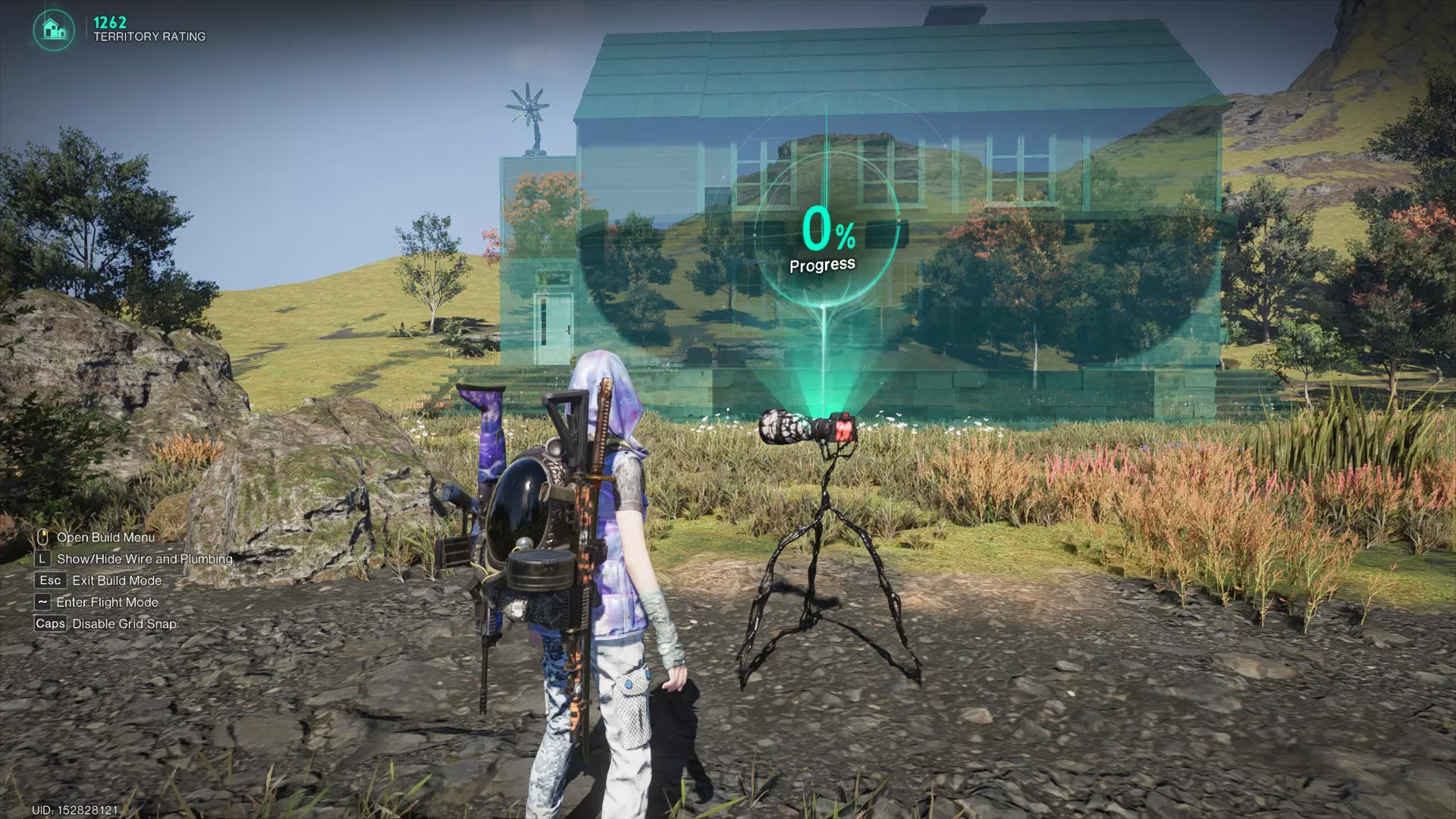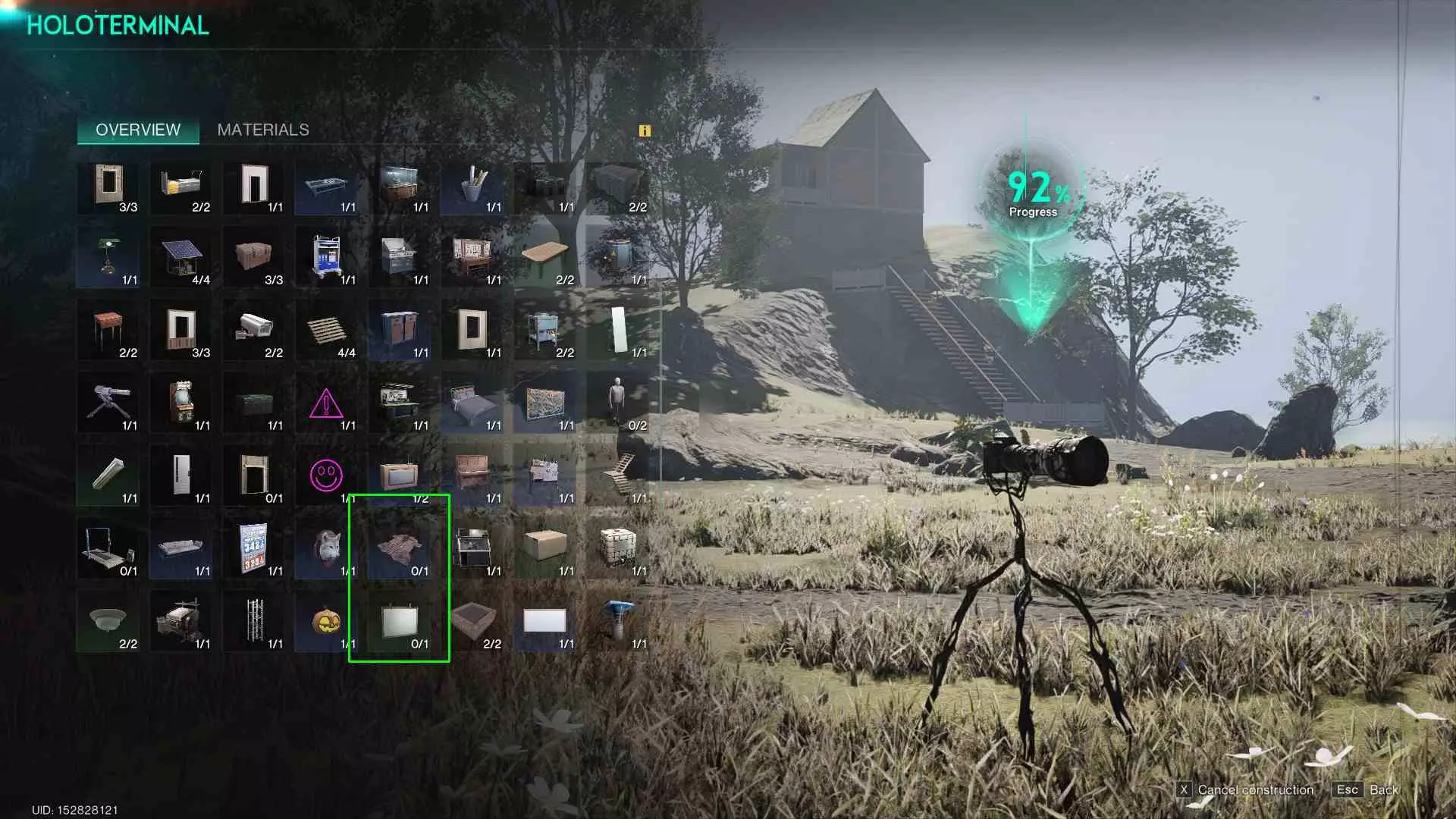 在永恒之地重建我的房子…… 在进行任何操作之前,一定要留意屏幕右上角的区域:它会准确告诉你将要建造什么、所需成本以及不包含哪些部分。在永恒之地建造时尤其要注意这一点,因为有很多装饰物品是“季节限定”的,它们只存在于你正在游玩的场景中,在场景之外无法使用。 以马尼布斯场景为例,黑鼻绵羊玩偶、罗塞塔宿主、发光向日葵(哇哦……),甚至一些广告牌和特定灯具,都只存在于该场景中,无法放置在永恒之地。建造与房屋蓝图选项 当你准备就绪时,会发现有两个可点击的选项:【建造】或【房屋蓝图】。这两个选项大体功能相似,但并不完全相同:若使用【房屋蓝图】选项,你将只能获得建筑的主体结构,而不包含任何内部组件。例如,如果你放置了彩色灯具,那么在蓝图中这些灯具不会重新出现。 虽然这个选项目前看似无用,但实际上并非如此,因为它允许你先建造框架设计,之后再用你的任何物品进行填充。不过这已经超出了本指南的范围。 所以点击【建造】,但是……要注意!三脚架全息终端 在点击建造前,请确保你的角色站在与新建筑相关的合理位置。这是什么意思呢?就是要确保你的建筑不会放置在离你当前站立位置过远的地方,因为所谓的【全息终端】或蓝图三脚架会放置在你现在所在的位置。