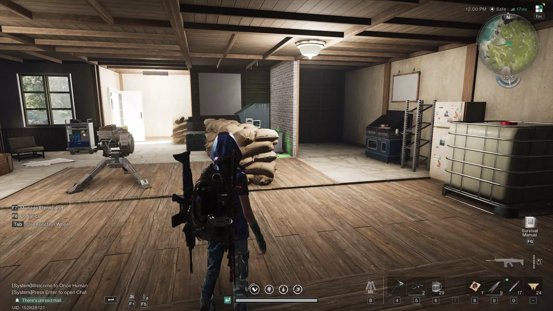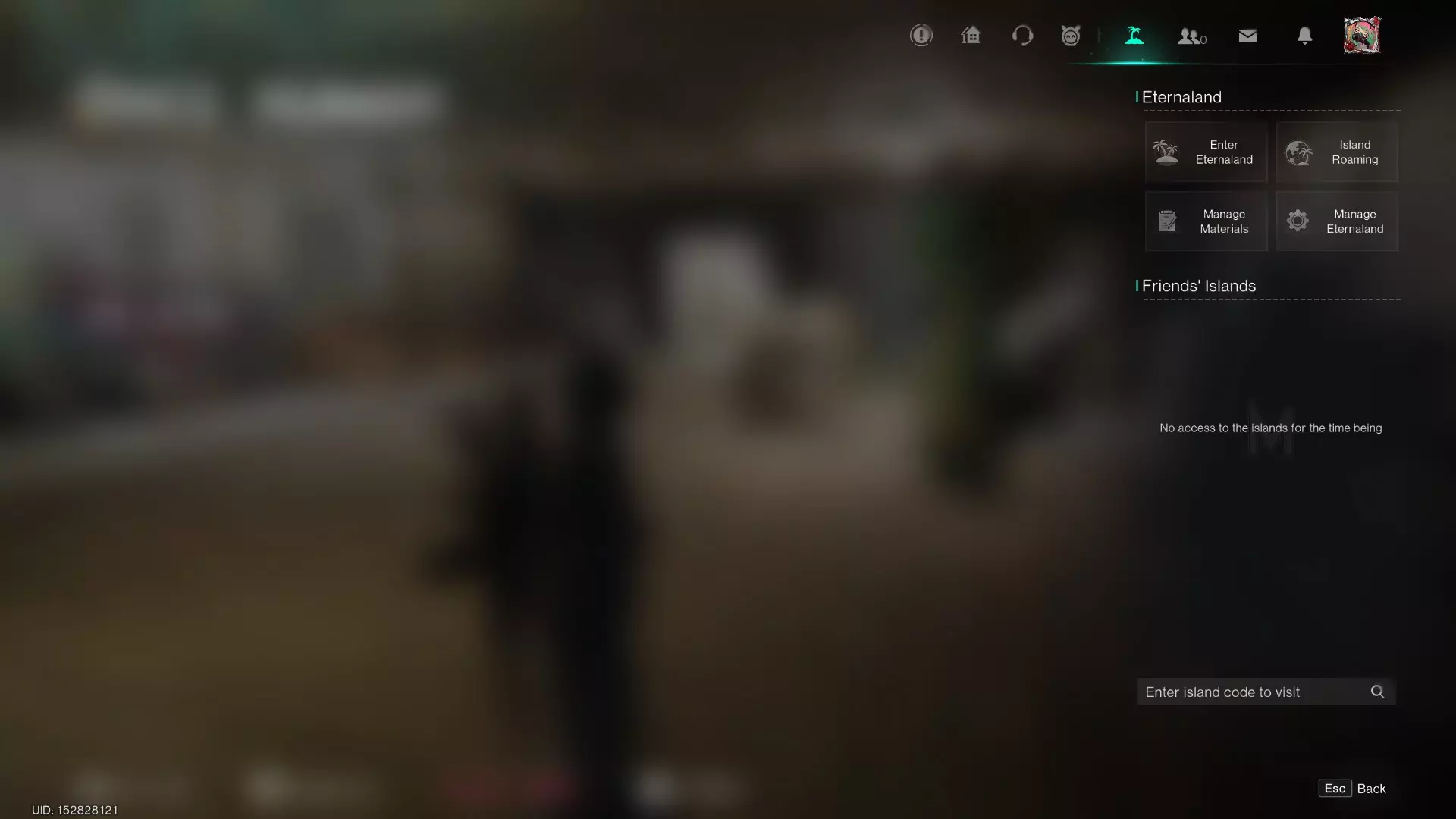 永恒之地是你的私人空间,永不重置,无论你正在游玩何种场景。基本上,你可以将其视为《七日世界》真正的“主”领域,因为当一个场景结束时,你的大部分物品都会存放在这里。按“I”键打开背包,你就会明白:此时显示的不再是赛季背包中的常规物品,而是时空背包;这是永恒之地的默认储物空间。 你可以从主菜单进入永恒之地,也可以通过之前展示的暂停菜单进入。只需点击屏幕右上角栏中显示的小岛图标即可。