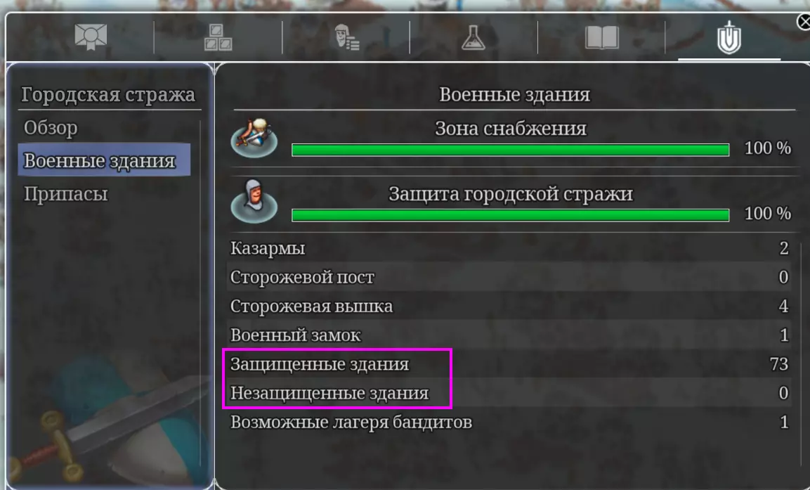 “To serve and protect”成就存在故障。本指南可帮助解锁该成就。 如何获取“To serve and protect”成就 有两个要点: 成就描述:“在一个人口为100的城镇中实现全面警卫覆盖”。 第一:只计算男性,不计算女性!也就是说,你的人口需要至少达到200。