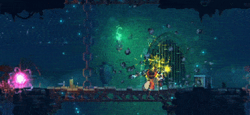 (来源) 技巧与窍门 第二部分 下方有什么?:每个人都会犯的一个常见错误:毫无头绪就直接往下跳。屏幕会聚焦在你的角色身上,多少会遮挡其他平台和敌人。使用锁链/管道慢慢爬下去,仔细观察敌人,尤其是在高层区域。那些挥砍者会在你察觉之前就把你砍得很惨。 连续攻击:当你使用弓、重型武器或法术(例如阔剑或闪电箭)时要格外小心,当敌人出现在你两侧时,你很容易被狠狠击中,因为在这种状态下你无法翻滚、跳跃或蹲下。但是,你可以通过按方向键将这些延迟攻击转向另一侧。诅咒宝箱:这类宝箱每次打开都会掉落3件优质物品,但你会因此激怒神明并受到诅咒。受到轻微伤害就会立即死亡,小心地击杀10个敌人即可解除诅咒。因此,只有在初始关卡(如【囚犯的牢房】或【被定罪者的长廊】)遇到时才建议打开。切勿在高等级关卡开启,那无异于自寻死路,而且你很可能已经拥有比宝箱提供的更好的装备配置。 是啊……是不是很诱人? YOLO:装备名为【Ygdar Orus Li Ox】(简称YOLO)的变异。它能在 boss 战和遭遇伏击时救你一命。激活后,你会冻结周围所有敌人。但处于诅咒状态时无法使用。确保你在第一层拿到它,因为之后它会被锁住,不知道为什么。 护符:护符只能由精英怪掉落。有一些护符拥有特殊属性,且掉落率极低。这些护符通常没有固定名称,似乎是随机的。但你可以通过以下列出的特殊属性来识别它们: 5秒不攻击后进入隐身状态。隐身状态下的下一次攻击造成+150%伤害。触发过场动画、获取卷轴等操作会使隐身失效。 你不再受到中毒影响。下水道,我们来了(中毒会治疗你!)(仅在下水道生效) 任何接触到你的敌人都会被冻结 超级马里奥模式:踩敌人头部可使其眩晕 受到的伤害降低30%+随机额外属性 你可以在空中跳跃四次(额外两次跳跃) 你迈出的每一步都会使地面燃烧3秒