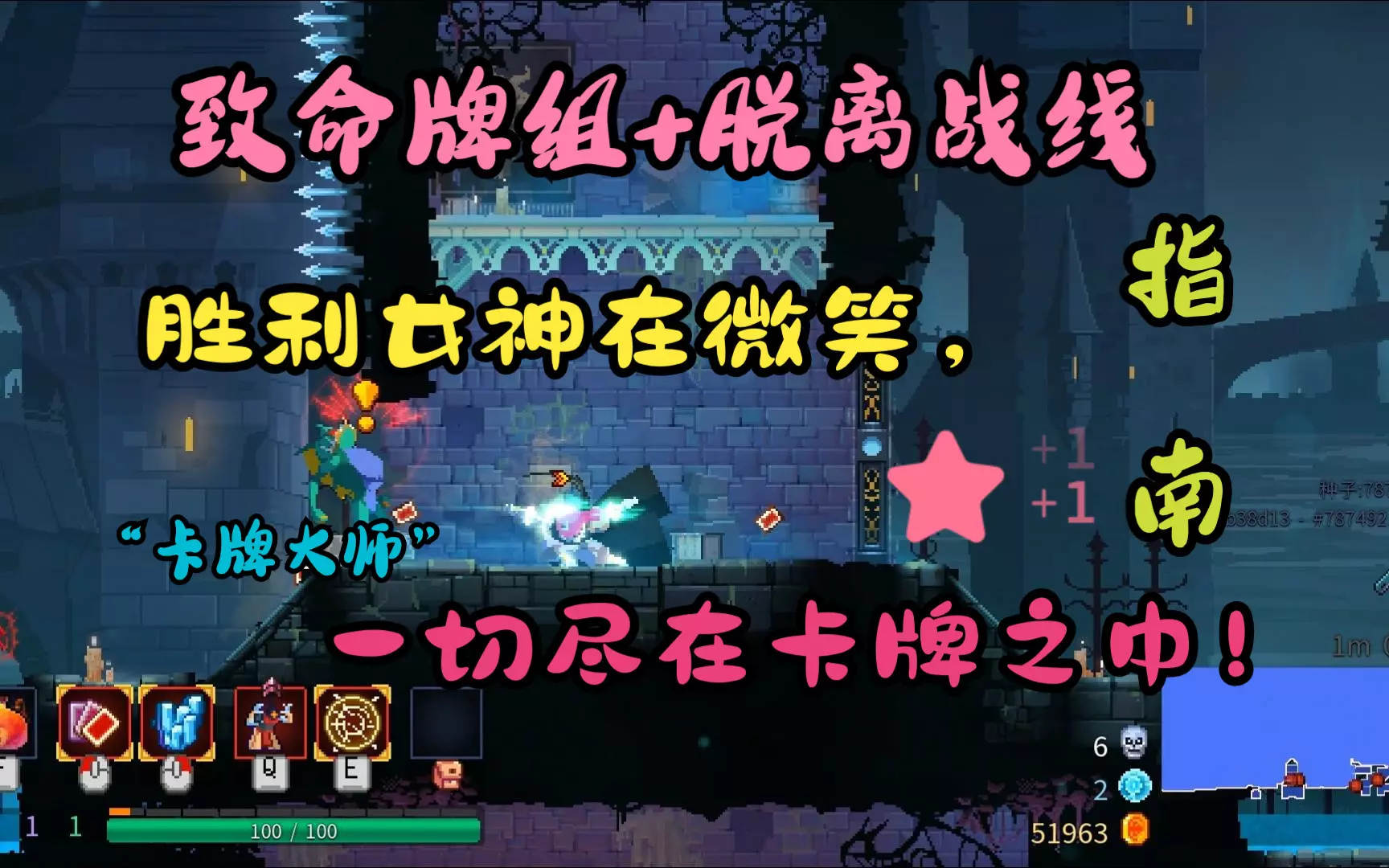 迷雾:许多潜伏在迷雾中的黑暗生物几乎是隐形的,你可以在它们移动时寻找微弱的微光,数一数有多少只并规划你的攻击。判断微光敌人的大小:体型较大的可能是挥砍者或捕手,较小的可能是僵尸或荆棘怪。机械蜘蛛很容易辨认,因为它会向你生成大量飞行敌人。 在墓地时,即使你和敌人之间有缝隙,也要避免与微光敌人对视。有一次,一只捕手从很远的地方就把我拉了过去,结果我在迷雾里被挥砍者和捕手一起围攻了;-; 不要使用:凉鞋和鞭子,真的别用,除非你把它们的伤害等级升到最高。武器搭配 在我的游戏过程中,我发现了一些不错的武器搭配。当然,每个人都有自己的玩法风格,但你可以试试这些搭配,看看效果如何!鞭子和暴击弓对守望者效果不错。一些能帮助你在这场战斗(尤其是触手阶段)中生存下来的护符: - 4段空中跳跃 - 翻滚时地面燃烧3秒 - 翻滚时掉落炸弹 - YOLO(现为变异) 刺客路线:所有可能路径列表: - 黑色大桥 > 雾萦港湾 > 钟楼 > 时钟室 - 黑色大桥 > 雾萦港湾 > 被遗忘的陵墓 > 时钟室 - 黑色大桥 > 沉睡的庇护所 > 钟楼 > 时钟室 - 黑色大桥 > 沉睡的庇护所 > 被遗忘的陵墓 > 时钟室 - 不屈要塞 > 沉睡的庇护所 > 钟楼 > 时钟室 - 不屈要塞 > 沉睡的庇护所 > 被遗忘的陵墓 > 时钟室 - 不屈要塞 >墓地 > 遗忘陵墓 > 时钟室 攻击模式: 普通挥剑攻击 手里剑攻击 使用类似【捕手】的抓钩,但速度更快 方向闪避 造成足够伤害后,会有剑从上方落下,可通过翻滚躲避 使用的装备组合:还在研究中... 我击败它时用的装备组合是:【肉串】+【刺客匕首】和【冰冻手雷】+【腐化之力】,搭配变异:【YOLO】、2倍远程弹药和技能冷却时间减少50%。 它对冰冻攻击非常敏感,所以如果你找到任何对冰冻敌人有额外伤害的主武器,就有可能无伤击杀它。我冻结它后使用【腐化之力】造成更多伤害,但这非常危险。刺客匕首在远程攻击时相当实用,因为使用它时你能比使用弓、鞭子或任何重型武器更快地躲避她的抓钩。冰弓效果也不错,但不推荐。 国王之手 所有可能的路径列表:在击败刺客后,你会在游戏结尾遇到他。时钟室>城堡>王座室 攻击模式: 近距离用长矛攻击,还会向前冲锋 用拳头猛击地面产生冲击波 向你投掷大量炸弹 当他向你冲锋时要小心,可能会掉进带刺的坑里 会掉落3个【电击旗帜】,它们一落地就要立刻摧毁,否则准备承受高额伤害 召唤精英怪,此时他处于无敌状态,直到你击败精英怪 战斗结束时会发动强力地面猛击,产生毁灭性的冲击波 当你射箭时,他会进入防御姿态 他会受到冰冻/眩晕/减速效果影响,但在你能发动攻击前恢复得更快 使用的装备:还没打败他,但看起来他对能产生毒云、油污和火焰的武器/装备非常敏感他一直无视它们,继续前进。 结论 有时候,即便你小心翼翼,感觉一切尽在掌握,情况也可能突然急转直下,然后你就这么死了。这确实令人沮丧,但要记住,死亡是这款游戏的一部分,把死亡当成一种习惯吧!从头开始重新游玩真的很有趣,从之前的游玩经历中吸取教训,最终抵达最终关卡——可惜在那里你又会再次死亡,哈哈。你为旅程选择的道路,其实才是游戏的核心,而非最终会发生什么。宽刃剑(对冻结目标造成175%额外伤害)和火焰烙印(每投掷2-3次会掉落一枚炸弹)+冰手榴弹(若敌人死亡则减缓附近敌人速度)和碎肉机(对燃烧敌人造成100%伤害,且敌人死亡时会爆炸造成50点伤害) 穿刺者(投掷手榴弹)和狂乱之刃(投掷手榴弹)+冰手榴弹(减速)和碎肉机(+1力量,对流血目标造成30%额外伤害,敌人死亡后燃烧) 战争长矛(对被击晕目标造成25%额外伤害)+速射弓(+20%暴击伤害)和水平炮塔(子弹穿透首个目标,附近敌人冻结1.死亡8秒后)+天花板炮塔(对被冻结的目标造成100%额外伤害,敌人死亡后释放毒雾) 撕裂鞭与任意种类的弓 即使没有任何特殊能力,上述武器组合依然威力十足! 你也可以尝试使用上述其他配装中的装备或武器。评论区建议:穿刺者+冰霜爆破+火焰手雷+常春藤手雷 完整火焰套装/冰霜套装/毒云套装 带油滴的火焰套装 鲜血之剑+冰霜爆破+磁性手雷+集束手雷 刺客匕首(175%攻击力)+抓钩(火焰)+相位器(油) 狂乱之剑(4倍伤害,100%中毒伤害)+相位器(中毒) 突击盾+步兵弓+翻滚时产生毒云的护符+毒云+刀光剑影(对流血目标造成100%伤害,若目标死亡则传播流血效果)(适用于守望者) Boss成就(制作中) 尽管你拥有一些能轻松清理楼层的优秀装备组合,但它们可能并不适用于对抗你遇到的看守者。守护者是目前游戏中的四个Boss:黑桥的未完整者、痛苦地牢的守望者、时钟室的刺客以及城堡的国王之手。 未完整者:或许是整个游戏中最简单的Boss。 所有可能的路线列表: - 囚犯的牢房 > 被定罪者的长廊 > 壁垒 > 黑桥 - 囚犯的牢房 > 剧毒下水道 > 壁垒 > 黑桥 - 囚犯的牢房 > 被定罪者的长廊 > ossuary > 黑桥 - 囚犯的牢房 > 被定罪者的长廊 > 监狱深处 > 黑桥 绕过方法:按照下方守望者Boss的路线前进。攻击模式: - 当玩家靠近时,倾向于发动延迟但威力强大的攻击 - 当玩家靠近时,会周期性地激活护盾 - 如果你对其造成过多伤害,它会激活排斥护盾并发出尖叫 - 如果你距离过远(半血后),它会向你猛扑并造成大量伤害 - 如果你距离较远,它会发动大范围攻击(如果不想让它使用此技能,只需保持靠近,这样它就会不断重复发动延迟攻击) - 生命值越低,它连续使用上述