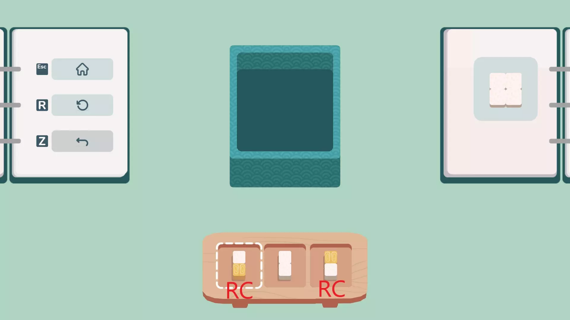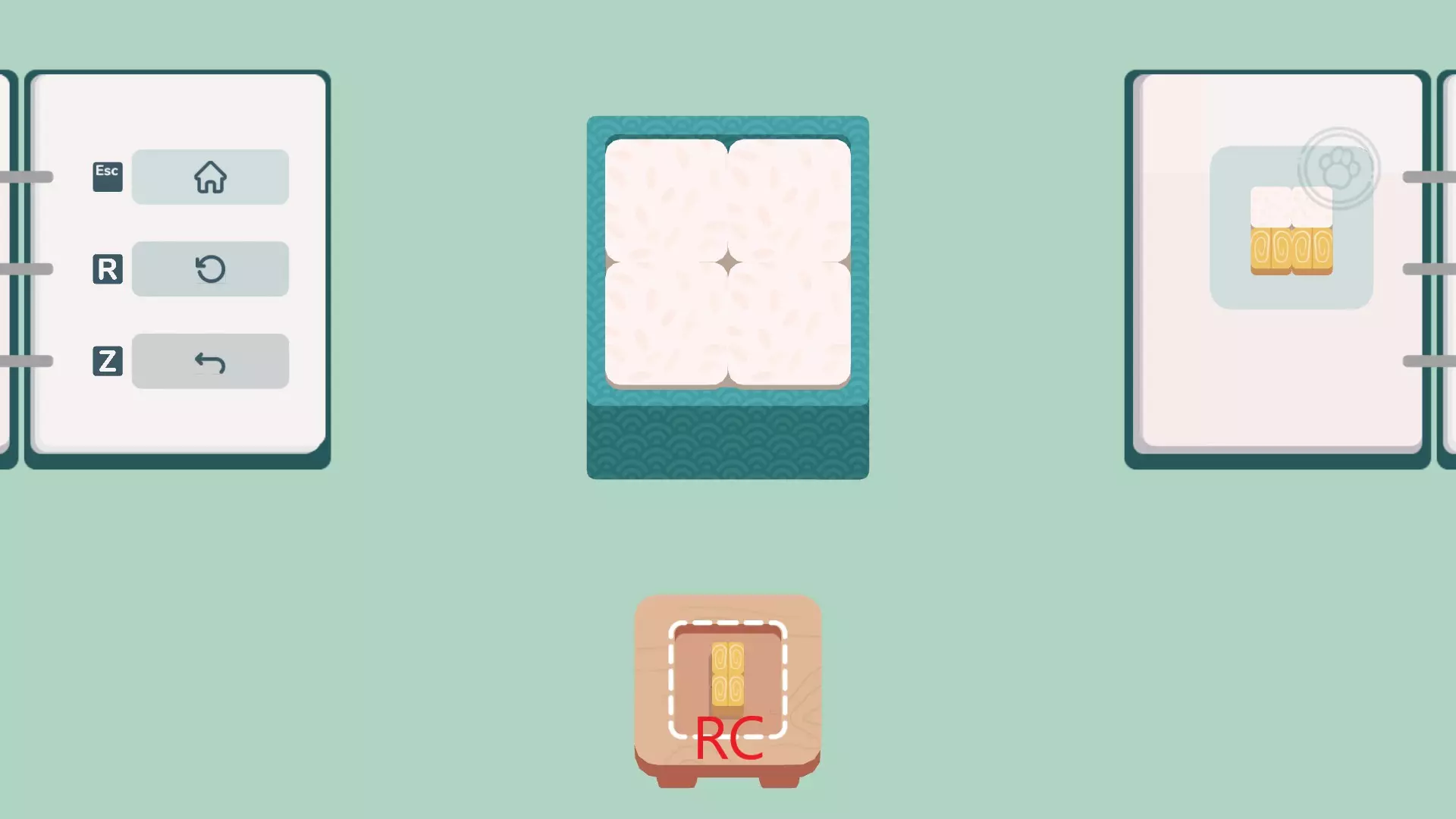世界1所有谜题的解法。完成可获得First Bite成就。 右键=RC 1-1