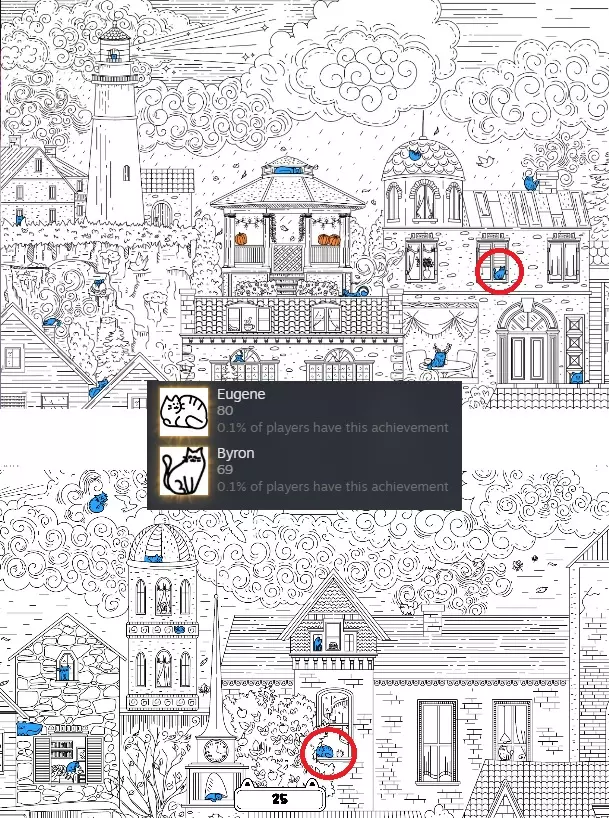 The 2 NEW Achieves.... JUST GO & CLICK ON THE 2 CATS THAT I HAVE CIRCLED to get the achieves to pop for them ;) Just to clarify things.... these 2 new achieves are just that whereas the 2 cats ARE NOT new additions.