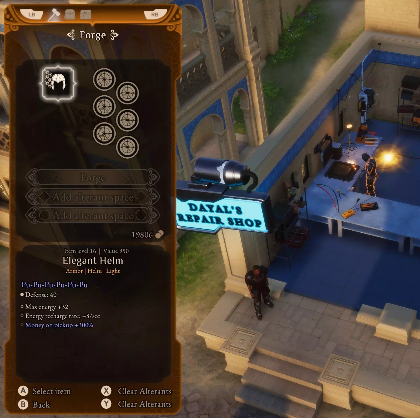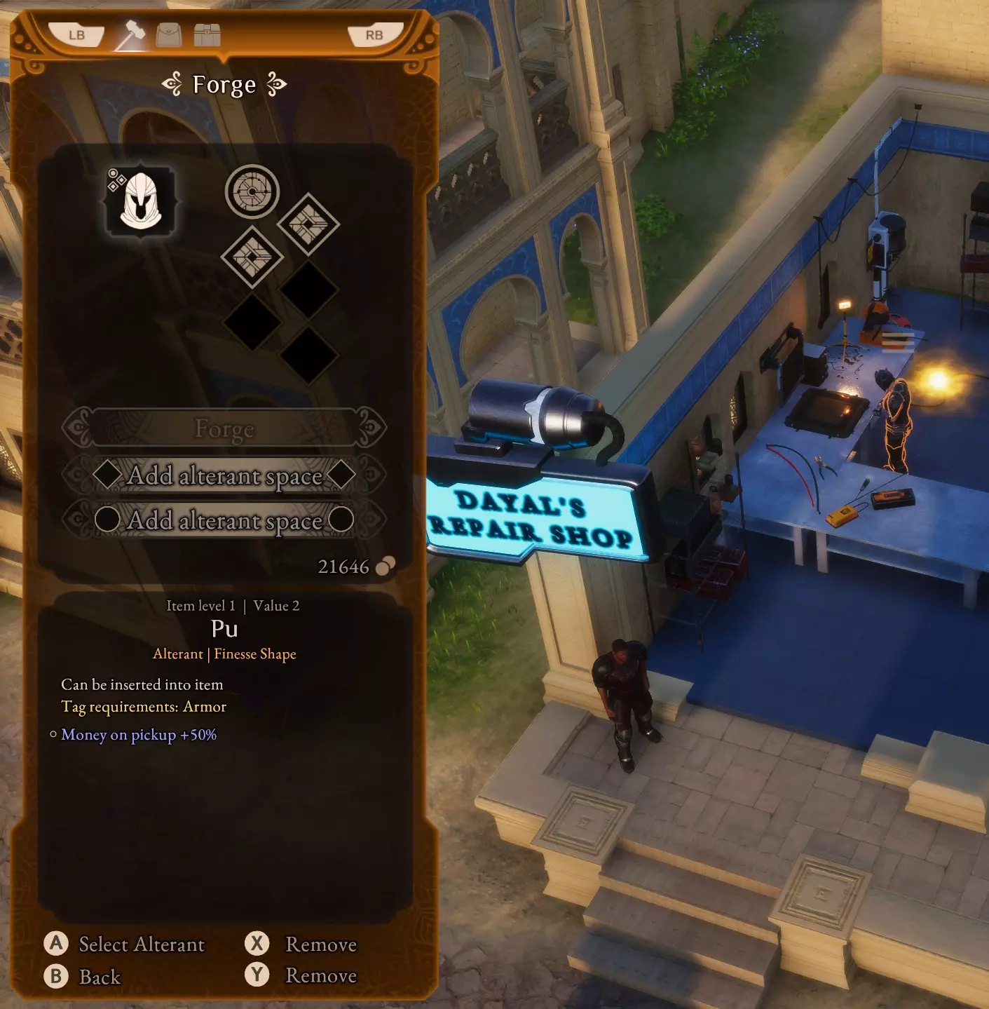 第三步! 接下来,回到【奎隆 - 戴拉之家】,使用城镇中的商人寻找一把单手武器,例如钉头锤,该武器需带有一个方形强化槽以放置【贪婪精华】。方形强化槽只能通过寻找获得,无法添加到装备上。使用之前提供的方法刷新商店:快速旅行然后返回。 接下来,前往位于奎隆的家族家园中的锻造炉,从你购买的装备上移除【拾取金钱+50%】和【贪婪精华】强化。将这些强化放入你想要使用的任何 armor 和单手武器中。头盔和胸甲最终需要各留出总共六个圆形强化槽的空间。你可以在锻造炉添加额外的强化槽。继续在护卫任务【摧毁巢穴】中刷到25K,并重复此过程,直到你的主武器和副武器各拥有12个【拾取金钱+50%】变异体和2个【贪婪】变异体。每次你有能力为装备添加一个【拾取金钱+50%】变异体时,都会极大地加快这个过程。优先选择【贪婪】变异体,因为它价格便宜且容易获取。一旦你的头盔、胸甲和两把武器都完全升级,你将获得+800%的拾取金钱加成。