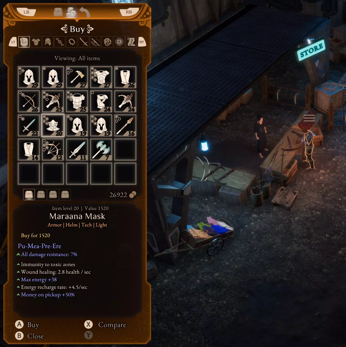 接下来,前往城镇【洞穴-镇中心】。通过推进主线任务,你会在游戏初期自然遇到这个城镇。与镇上的商人对话,寻找带有【拾取金钱+50%】属性的 armor。如果商人没有出售,可以通过快速旅行到【奎隆-戴拉之家】,然后再返回【洞穴-镇中心】来重置商店。重复此过程,直到获得至少一件【拾取金钱+50%】的 armor。