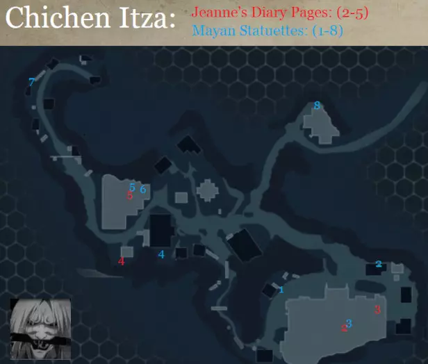 成就#23 - 船员:完成所有3个船员任务。 完成第三个也是最后一个船员任务后,即可解锁该成就。 怀表#7 - 巴黎杰作:这只怀表可以在任意走私者处以21250₠购买。在新奥尔良,走私者的位置分别是:墓地以东、市中心、城市北缘以及港口东南缘。 奇琴伊察: 回忆#1 - 返回墨西哥:准备就绪后,前往港口,我们将乘船前往奇琴伊察。找到隐藏的皮划艇,然后乘皮划艇顺流而下,前往通往天然井的隐藏入口。玛雅文物#10:乘坐独木舟抵达目标后,潜入下方的水池,然后沿着小路前进,直到抵达需要攀爬的巨大石柱。在攀爬石柱之前,继续沿着小路往下走,会到达一个死胡同,那里就是该玛雅文物的位置;此玛雅文物只能在该记忆中获取,若错过机会,则需要重新游玩该记忆。