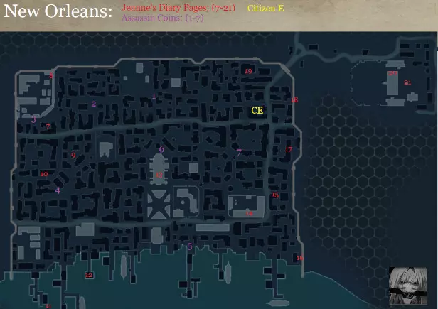 在此过程中,请务必关注贸易系统,因为这是获取收入的最佳方式。我们需要大量埃居(écus)来购买所需的贸易船只和怀表。确保尽可能多地进行偷窃,以获取5000埃居(écus)。考虑到赚钱的难度以及船只和怀表的高昂价格,建议尽量节省开支,避免在武器店或裁缝店购买物品,因为它们的成本过高。 珍妮的日记页#7-21:现在我们可以前往新奥尔良,寻找其余所有15页日记页。契约 #1 - 迟到的正义:作为刺客,我们可以在新奥尔良的北端领取契约。阅读契约后,你将获得刺杀目标的任务。 可选目标 #1 - 使用隐藏之刃击杀目标:这很简单。找到目标并用隐藏之刃将其击杀。 契约 #2 - 告密者:阅读契约后,你会发现我们的任务是刺杀两个目标。 可选目标 #1 - 同时消灭两个目标:要完成这个条件,我们必须利用双重刺杀同时击杀两个目标。首先找到他们。然后需要爬上附近的屋顶,从上面跳下并同时进行双重刺杀。通过冲刺完成的双重击杀可能不算数。 契约3 - 免费送达:阅读契约后你会发现,我们的任务是消灭另一个目标。首先,我们需要找到信使并跟随他,以找到目标。 契约4 - 安全通行:这个契约有些不同。我们需要找到走私者并护送他到安全的地方。 可选目标1 - 在2分钟内完成任务:一旦找到走私者,我们就必须赶往目的地。幸运的是,距离不远。冲刺跑向目标,避开守卫(走私者会跟着你),到达后,尽快杀死追来的守卫。到目前为止,应该只有6-8名卫兵在追击你。 契约#5 - 猎鹰行动:在我们最后的契约中,我们只需杀死最后一个目标。也没有任何限制。杀死目标并搜刮他,以定位第二个目标。同样杀死他并搜刮。 刺客硬币#1-7:作为刺客,找到前七枚刺客硬币,它们以掉落的硬币为标记。前往标记处并消灭土匪——可以杀死他。无论你用什么方式解决他,确保搜刮他的尸体以收集硬币。 公民E #3:前往地图上标记的区域,以发现新的公民E进行消灭。