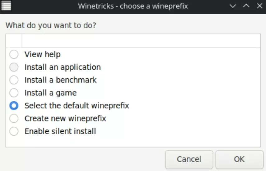 如果在此列表中未找到《星际之剑:深渊》,且游戏已安装在SD卡上,请参考上一步骤 Protontricks配置 选择【选择默认wineprefix】并点击确定