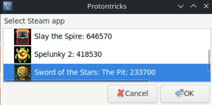 选择The Pit进行配置 在Protontricks中选择【星际之剑:深渊】并点击确定。