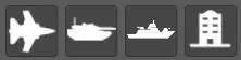 按下任意按钮都会打开一个菜单,你可以根据所按的按钮放置飞机、地面载具、舰船或建筑;点击任意单位也会打开其相应的菜单并选中该单位。