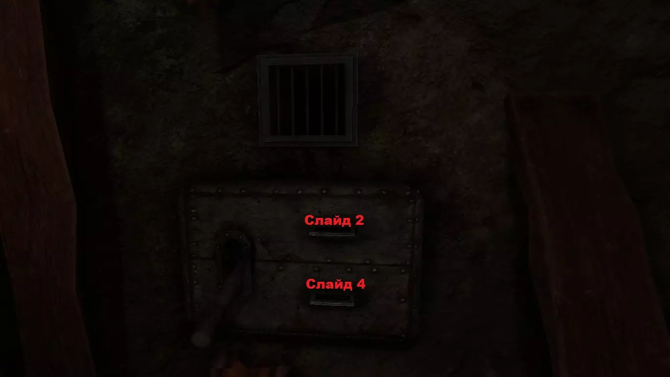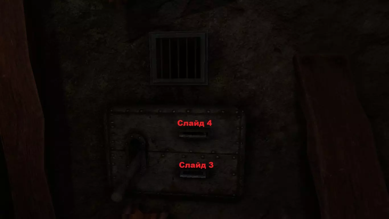 第二:在第二个场景【图书馆】中,要解救俘虏需要收集散落在场景各处的幻灯片(上方的地图将有助于寻找)。这里需要3号和4号幻灯片。幻灯片需放入某间房间墙壁上的机关中。机关内幻灯片的放置顺序为:上方接口放4号幻灯片,下方接口放3号幻灯片。然后启动拉杆。