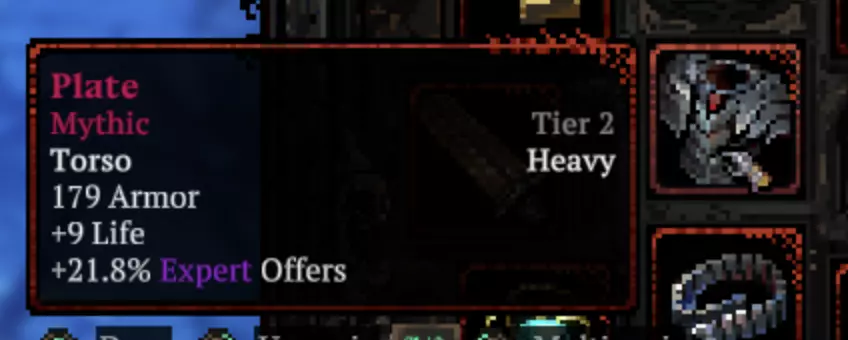 Avoron。 为什么是90级而不是100级,首先正如你们所想,玩【坦克】流派确实很难做到100级,我花了很长时间寻找能让我打到90级难度沙漠的策略,但实际上只要再次获得大致相同的技能,100级难度是完全可以实现的(正在尝试中) 装备 由于我们玩的是坦克流派,我们会有很多护甲,还有一点生命值回复(能收集到多少算多少),完全没有回复会很困难。 头盔。82点护甲(一开始没找到),【大师级选项】非常有用,因为它能解锁【传奇选项】,这对我们来说很有必要。