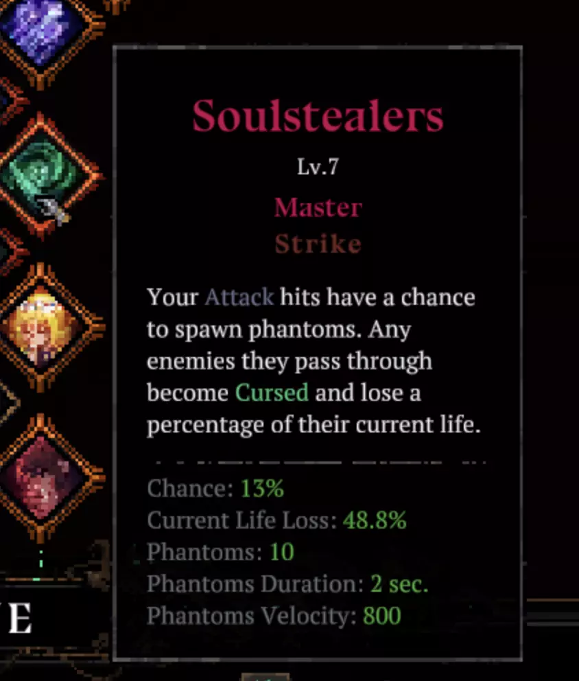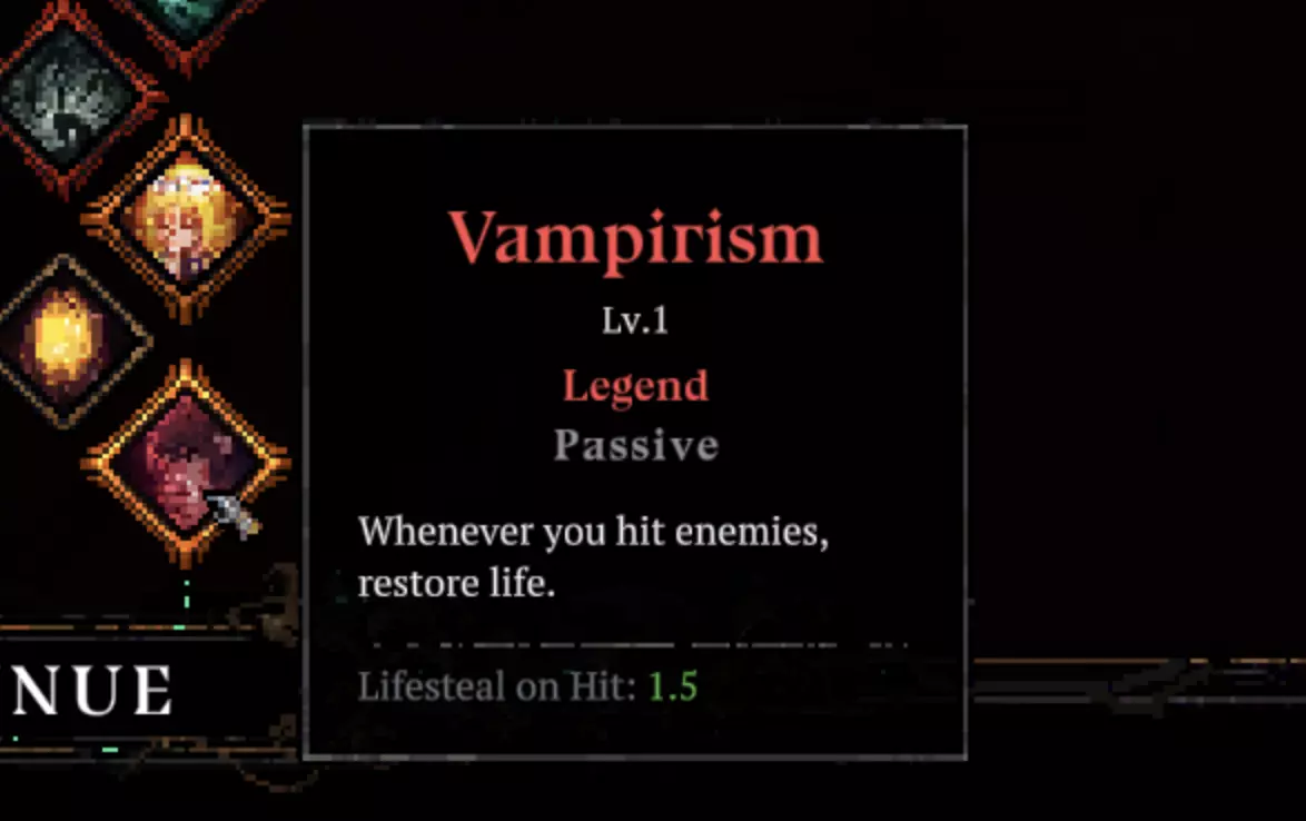 【吸血】:每次攻击恢复1.5点生命值,它帮助我将生命值维持在正常水平。 本局所有技能