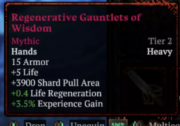 手套。 总体来说没什么特别的,15点护甲,最重要的是+0.4的生命回复,这也很有用。