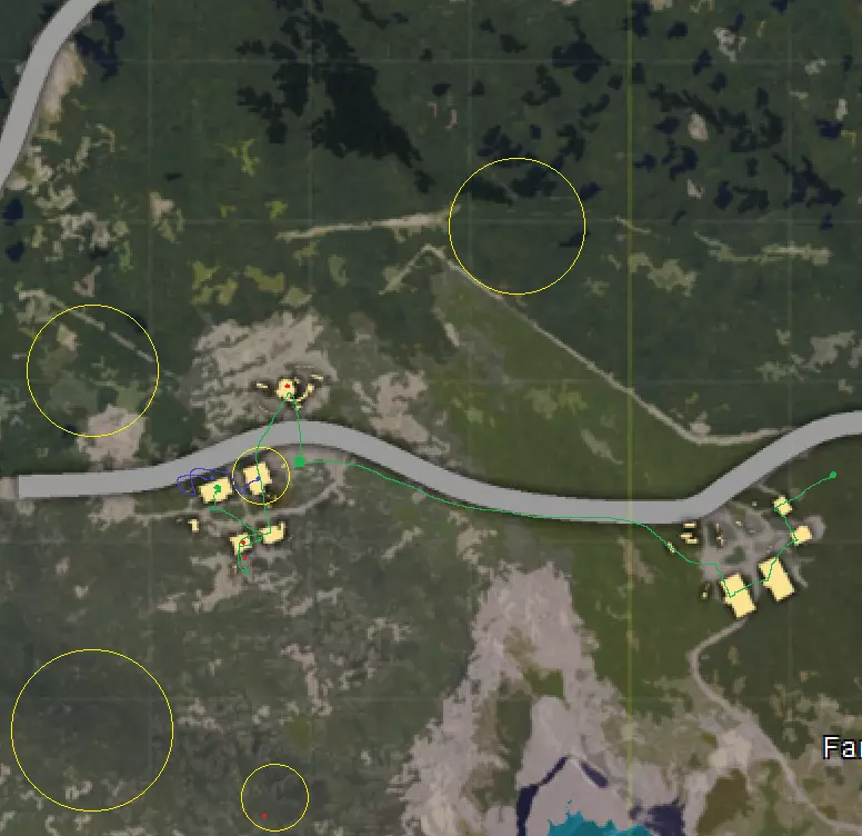在地图中,我从东边的村庄开始。 绿色点 - 我。 绿色线 - 我的行进路线。 红色点 - 我击杀的敌人。 蓝色点 - 最后一个敌人。 蓝色线 - 最后一个敌人的行进路线。 黄色圆圈 - 枪声、危险区域、敌人存在。 初始跳伞时,我等到飞机飞出去一段距离后才跳。我降落在一个距离航线垂直距离约600米的小村庄。这个村子里有一把手枪和一把UMP。安全区刷新后,我开车前往西边的下一个村子进入安全区。我把车停在路边,想以此迷惑敌人,让他们以为这是系统刷新的车辆,村子里没人。我进入北边的地堡,并关上了身后的门。几分钟后,有人弄出声响并进入了我的建筑。我利用掩体、闪身和射击,将他击倒。我在语音里说“谢了,白嫖的物资”。他有一把泵动式霰弹枪,被我捡了。 我往南走,打算搜刮村子剩下的地方。我把每间屋子的外门都关上了,这样能骗敌人以为这片区域还没被搜过,让他们放松警惕。我搜了3间屋子,最后不得不躲在西南边的第三间屋里。这时有辆车开到了东北边那间屋子附近,接着传来一阵枪声。我看了眼击杀信息,什么都没显示。我猜东北边那屋里有两个敌人。我在二楼静步移动,尽量不发出声音。我当时拿着一把AK和一些子弹。 一辆车开到了我所在屋子的南边,他停下车,躲到了半墙后面。那根本算不上完全的掩护。我开车靠近中心区域,弃车后远离车辆。我在一棵树旁趴下,确保身体被草丛和阴影掩护,然后开始等待。我通常会为此穿上全黑的服装。我使用静步走或按住行走修正键,几乎不发出任何声音,也几乎不移动。 有个人靠近了我的车。我用单发模式向他射击。他没死。很明显,由于我趴在阴影里,他完全不知道我在哪里。因为他躲在掩体后面,所以轻松地跑掉了。 一个人从东边朝我跑来。当他离我还有5米远时,我用连发模式向他射击。我爬到他的尸体旁,发现他身上有我需要的所有东西:一个4倍镜、大量药品、大量能量饮料和手榴弹。我回到原来的位置继续等待。我把所有不需要的装备都清理掉了。绷带少带了些,手枪子弹直接清空,主武器弹药也减少了(我估计150发就够用)。这样做是为了下次搜物资时能更方便地拿了就走。 我听到南边有车开过来。我稍微躲到树后,趴下后对着他的头开了枪。他的车继续往山下开,这对我的隐蔽来说再好不过了。我迅速搜刮了他的尸体,然后回到自己的位置。我开始等待。新的安全区刷新了。我开始慢慢往那边爬。但就在这时,我听到西边有人在大声爬动。真是个失误。我转向他的方向,做好准备。我把步枪调成了连发模式。他一出现,当他的身体在5米外完全暴露出来时,我就开枪了。我搜刮了他的东西。我扔掉了副武器以降低自身轮廓,现在只使用一把AK。 我留意着所有枪声并记住了方向,判断后方可能是安全的。 我朝着新的安全区爬去并等待。在这段间隙我使用了一些能量饮料,这样就能获得治疗和奔跑加成。安全区正在缩小,我继续爬行。但我速度太慢,最终只能蹲走进安全区,然后立刻趴下。我进行了治疗并使用了更多能量饮料。 此时安全区已经非常小了。我的左右两侧都有枪声。我正位于一个杂草丛生的背阴小山坡半腰处,只要不怎么移动,基本就能隐藏自己。我随机扔出了三颗预煮(按R键预煮)手雷,其中一颗成功淘汰了一名敌人!还剩3个人,陷入了三方对峙的局面。我需要更多信息,所以选择静观其变。最后那两个人自乱阵脚,开始互相开火。其中一人被淘汰。现在我掌握了足够信息,知道最后一个人在 hill 底部,但处于新的安全区内。他在开阔地带,趴在草丛里。我小心翼翼地调整位置,同样保持趴下姿势,瞄准他,确保自己能做到这一点。趴着的时候,有时会因为地形原因无法瞄准到想要的位置。我朝他扔了两颗拉了弦的手雷。他纹丝不动。 我开枪将他淘汰,成功获胜。 战争故事 - 单排胜利3 单排-FPP,这才是正确的游玩方式。 我去了 Pochinki 附近,捡到了一把步枪。然后开始向北朝着安全区跑。我进入了一个村庄,在一栋建筑里埋伏起来。我知道人们很可能会朝这个方向来。我看到窗外有个人,他进了另一所房子,等着伏击别人。我现在的计划就是等着伏击这个伏击者。 安全区正在缩小,我在安全区外等着,知道它不会对我造成太大伤害。我当时在安全区外,心想:“哇,这家伙真疯。新的安全区太远了,我得走了。”于是我从他所在的方向离开,进入了不远处的安全区,然后开始朝公路跑去想找辆车。我看到路上有一辆越野车,但忍住没开枪,因为那样会暴露我的位置,引来注意,而且也是浪费弹药。 幸运的是,我找到了一辆UAZ。我上车后,朝着岛东北部那片树木茂密的山区开去。我穿过一座北部的桥,竟然没有遭到伏击。 我知道这里的战斗会很稀少,因为很少有人会降落在这个区域,而且这里离初始降落点很远。所以我把车尽可能开到山上,然后弃车,朝着山的东北角前进。我知道人们很可能在斯塔勒(Stalber),于是避开了那里。我当时在斯塔勒的东北方向,正好处于新安全区的中心位置,下一个安全区靠近我的可能性很大。 我在一棵树旁的草丛里趴下。我穿的黑色衣服在阴影里很隐蔽。我把一个小土堆当作掩护和隐蔽物,趴着缓慢移动,这样至少能随时开火。 我等待着。我听到斯塔勒传来枪声。新的安全区刷新了。我听到西边有人跑动,于是转向那个方向埋伏。他们离我只有5米远。