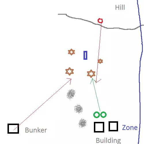 在这种情况下,队长被击倒了。你还在往前移动,结果撞到了他。你挡住了他后退的路线,导致他被淘汰。然后你不得不面对两个敌人,最终也被击倒。 组队 - 跟随队长 尽量不要和队长躲在同一棵树后。几个人无法很好地躲在一棵树后面。移动到另一棵树、灌木丛,或者在队长身后趴下。 组队 - 美国海军陆战队火力小组(4人)阵型 美国海军陆战队有他们自己的火力小组阵型列表。你会发现由于地形通常比较复杂,大多数阵型都无法使用。 团队作战 - 战术手册 在本节中,我将介绍一套标准战术,你可以用它们来完成一些常见任务。锤砧战术 也被称为“牵制侧袭”。一人吸引敌人火力或压制住敌人,另一人则绕后,趁敌人注意力被分散时发动攻击。注意提防其他敌人。 掩护扔雷 敌人被困在一个小建筑内。一名玩家负责牵制敌人,另一名玩家通过窗户投掷手榴弹。第一名玩家则等待攻击从房间里出来的敌人。 破门扔雷 敌人被困在一个无法逃脱的房间里。一名玩家炸开房门,另一名玩家通过炸开的洞口投掷手榴弹,也可以投掷震爆弹。 高低楼层配合 一人在顶层,另一人在底层的房间。顶层的人可以故意暴露自己的位置,敌人会以为所有人都在高处,从而移动去攻击他。当敌人正专注于你的队友时,楼下的敌人突然出现并从背后向所有人开火。 压制火力 如果你的一名队友正遭受攻击并被掩体后的敌人压制,另一名队友可以射击敌人所在的掩体。这可能会阻止敌人离开掩体射击你的队友。你的队友随后可以轻松地脱离危险或进行反击。我的倒地队友正遭受敌人火力攻击,于是我向敌人附近射击以防止他被淘汰。敌人立即停止了射击,而我的倒地队友得以找到足够的掩护。我的其他队友则包抄过去并消灭了敌人。 游戏玩法 - 出生岛 本节将介绍出生岛,也就是等待大厅。我建议你在野餐桌上试用每一把枪。通过射击敌人或容器来查看弹道散布。 这款游戏的战斗强度不高,这是一个难得的机会来试用这些稀有的枪支。 不同的枪支有不同的瞄准机制和弹道散布。尝试在以下情况下射击: - 移动或静止时 - 站立、蹲下、趴下时 - 第三人称腰射、第三人称瞄准、第一人称时 - 上述情况的组合 人体蜈蚣 你可以尝试通过大喊“人体蜈蚣”来分散所有人练习的注意力,然后绕着中间爬圈。很多人会加入你的人体蜈蚣,从而分散对手头任务的注意力。 游戏玩法 - 前10分钟 你的队伍应该商量选择一个有丰厚物资且不会陷入战斗的地方。飞机航线是随机的,所以你们都得快速做决定。以下是一些需要注意的事项: - 离中心越远,遇到战斗的可能性就越低。 - 离中心越远,就越有可能需要载具。 - 战斗越少,你能搜集的物资就越多。 - 搜集的物资越多,遇到麻烦的几率就越低。 - 高资源区域(建筑物密集的地方)很可能会有人。 - 很多人会尽早跳伞。 - 跳得离飞机航线越远,遇到人的可能性就越低。 - 在飞机上等待的时间越长,遇到人的可能性就越低。 综合考虑这些因素后,在地图上标记一个位置,并问问队友这个选择是否合适。如果他们说那个地方不错,就在与飞行路径垂直的位置跳伞。 在第一人称模式下可以看到飞机内部,也可以从第三人称视角向里看。 在降落伞模式下,你可以: - 看向地面并按住前进键可以垂直下落。 - 如果将速度保持在约40公里/小时,就能最大化与飞机的距离。你可以根据需要前后移动来实现这一点。提前打开降落伞可以进一步增加距离,这样你能飞行1.5-2公里。 - 你可以“向后走”来停止向前移动。 这是【危险区域】地图的一个示例。