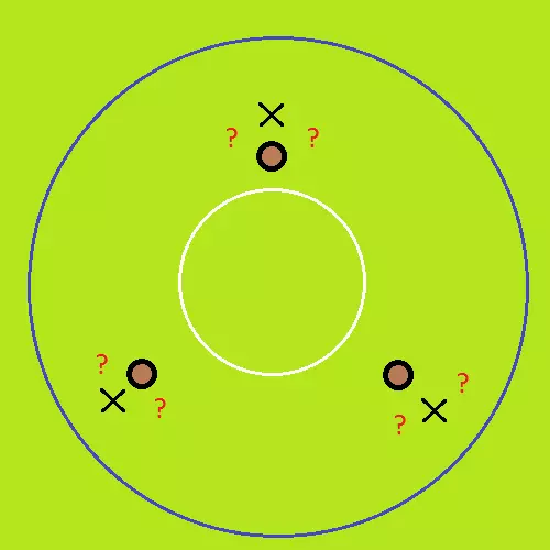 假设你是图中的人物,正躲在树后(棕色圆圈处)。安全区内还剩另外两人存活,他们也都躲在树后。你既没看到也没听到敌人的动静,完全不清楚他们的具体位置,他们可能趴在各自树旁的草丛里。新的安全区中心位于开阔地带,你还有90秒的时间,之后蓝圈就会开始收缩,若留在圈外将承受大量伤害。你会怎么做? 这完全是一场僵局。假设所有人的装备、掌握的信息、生命值、所处的掩体以及自身技术都相同,那么没人能占据优势。优势往往是通过某种不对称因素来创造的。随着时间一分一秒地流逝,如果你足够有耐心,敌人可能会做出一些不理智的举动。这将为局势制造突破口,从而为你创造优势。让我来解释一下。 在这种情况下,根据你的装备,你只有几种行动选择。 或许你可以主动攻击他们? 如果你有手榴弹,可以向树木投掷,不过这样可能会向两名敌人暴露你的位置。被手榴弹炸到的敌人也会暴露位置。你也可以向树木开枪,故意暴露自己的位置,尝试让其他敌人陷入恐慌。敌人可能会向你还击,这样一来,他们的位置也会暴露。 或许你可以迅速进入安全区? 你可以在最后一刻投掷烟雾弹,然后向安全区中心移动。这样一来,其他人就会知道你已经进入了安全区。烟雾可能会提前消散,让你暴露在开阔地带被攻击。 如果你选择上述任何一种做法,都会暴露自己的位置或大致方向,导致两名敌人将注意力集中在你身上。 这些选择都不太好。不过别担心,敌人的处境和你一样。你可以尝试站在他们的角度思考,猜测他们的最佳选择,并预测他们可能会采取的行动。 比如,你选择等待。两名敌人中可能会有一人忍不住采取上述某种行动。在最好的情况下,其中一人向另一人开枪,另一人回击,最终导致一人死亡。