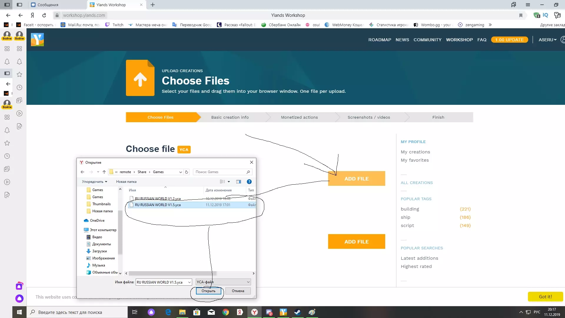 7.接下来只需将你的地图(例如【你的世界.yca】)以及截图上传到网站,截图是必须的!文件路径在第3点中已有说明,我的路径是:C: Program Files (x86) Steam userdata 156458958 298610 remote Share Games