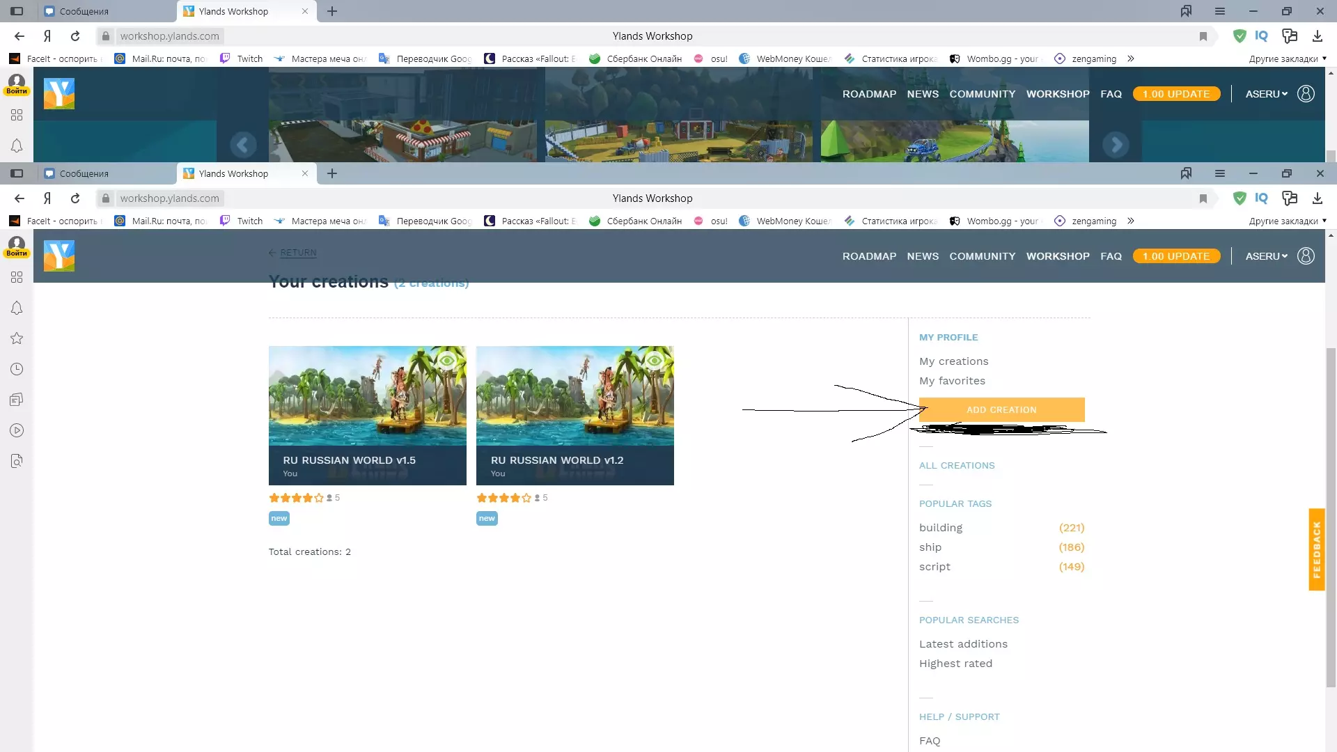 6.接下来点击【添加创作】(ADD CREATION)