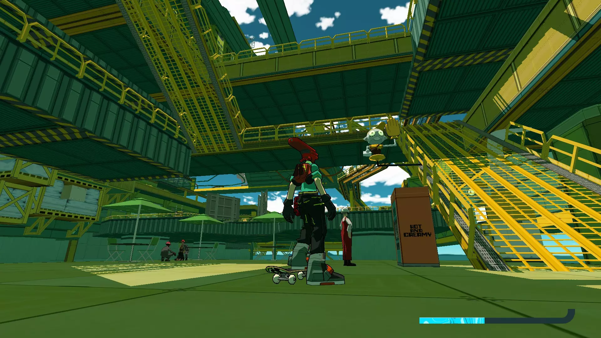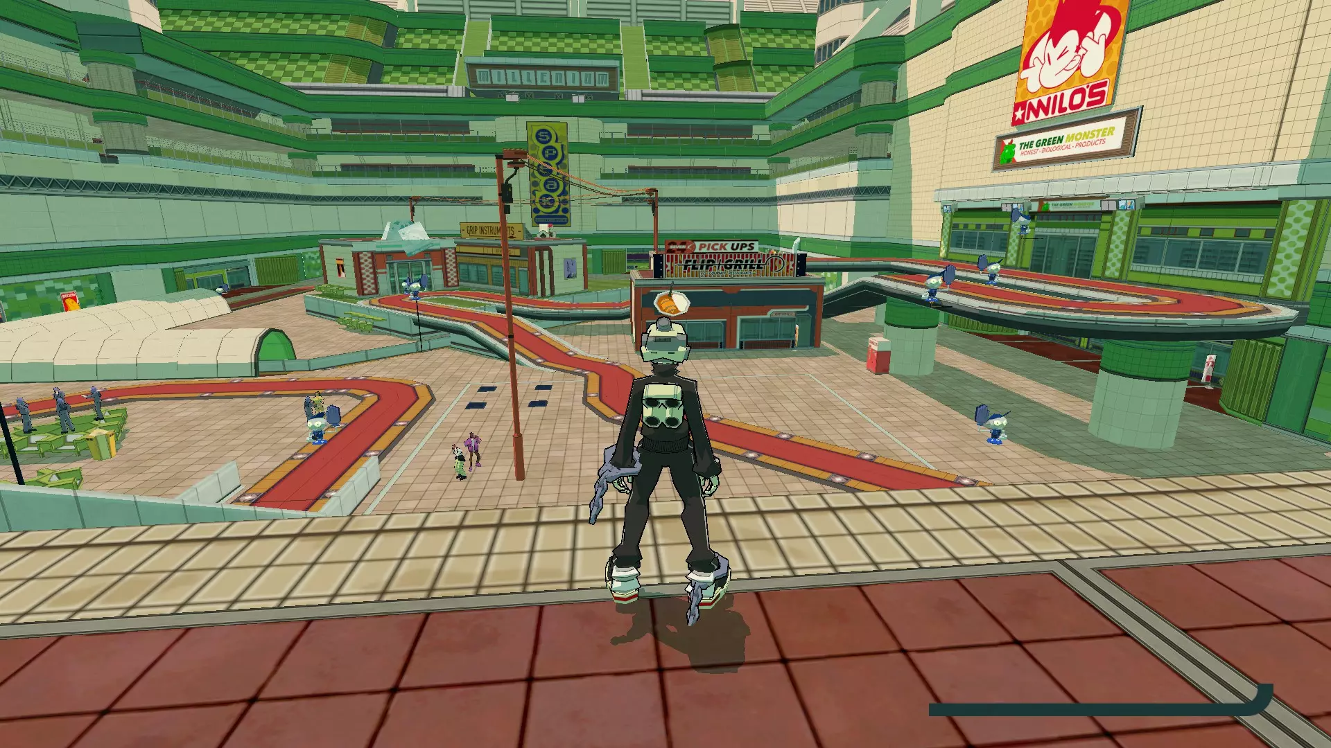 感谢otachi2zilla 操作员 - GRRL 在凡瑟姆山篮球场周围击中所有机器人男孩海报。在储藏室内,击中蓝色自动售货机可使其掉落CD。 GET ENUF - 长沼英树 滑过凡瑟姆山篮球场后方的墙壁下方。CD位于你右侧广告牌的尽头。 Plume - Legove 在从凡瑟姆山进入的千禧广场区域内(非中心广场的那些)击中所有机器人男孩海报。 Feel the Funk - Sebastian Knight 在千禧广场中心广场用 manuals 击中所有机器人男孩海报。在手动操作期间可以通过加速特技来刷新能量条(我的按键映射导致同时按下加速和滑行键有些别扭,所以我是这样操作的) 阳光律动混音带 进入这座建筑并前往顶层。在到达第二个环形区域前,朝着一排广告牌跳跃,并在它们之间持续跳跃。CD位于尽头的平台上。 发型完毕美甲完毕 - 色彩增强 前往你进入布林克终端入口的正对面,那里有一个金属围栏下方的滑板坡道,另一侧有一个通风口。越过围栏,在小巷深处撞击一个垃圾桶。CD就在里面。