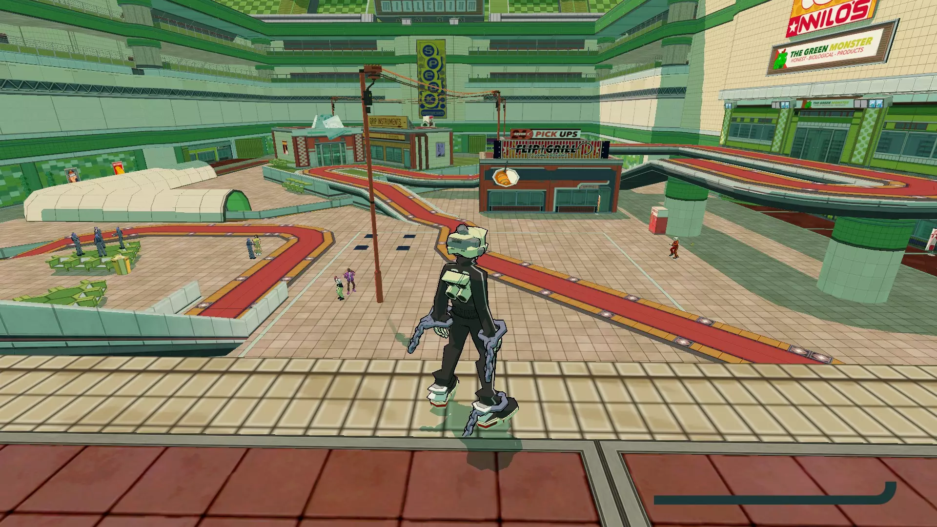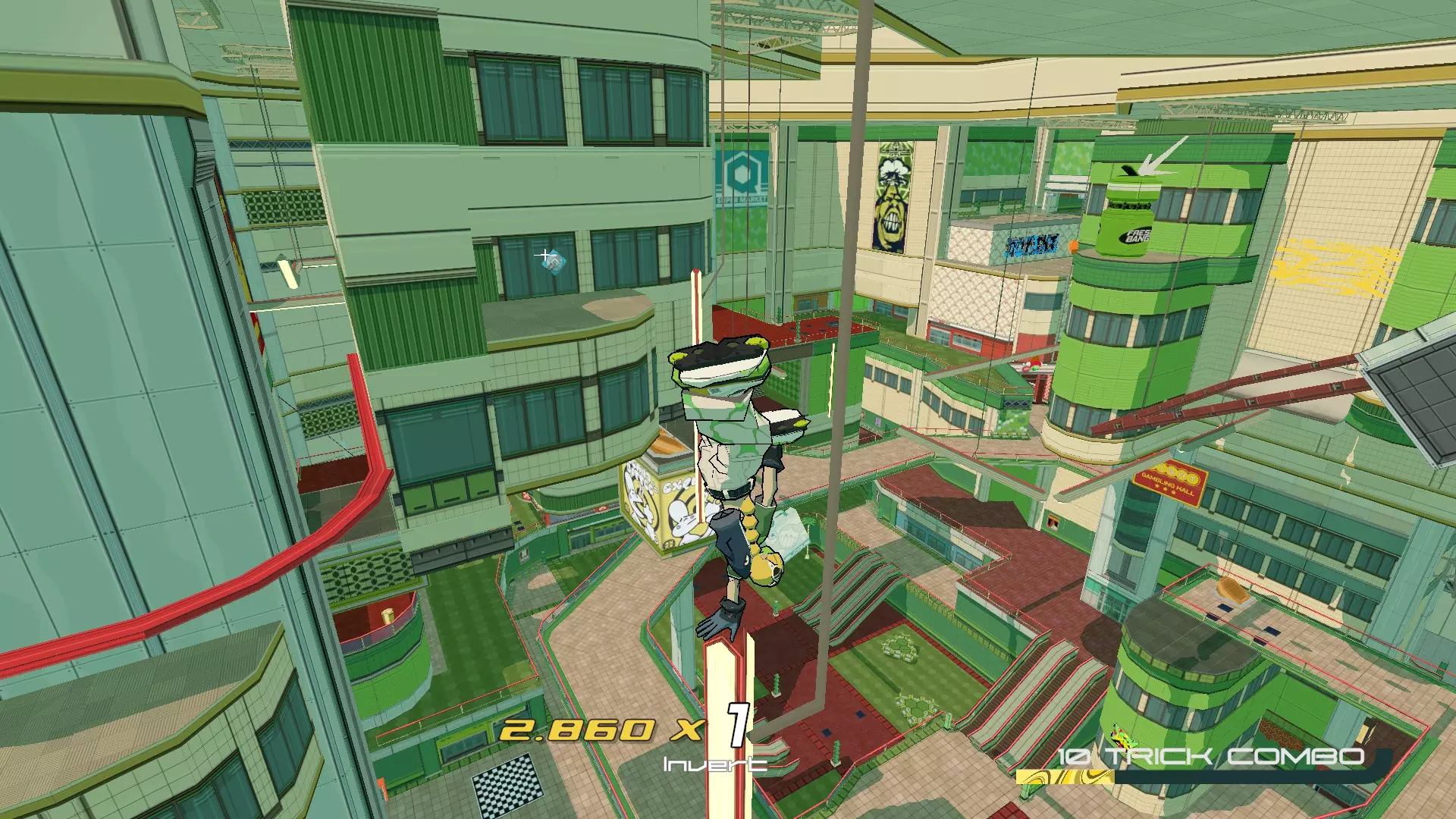 家猫混音带 在千禧购物中心的第一区域,有一棵棕榈树被一个穿绿色衣服的老派女性用音响挡住了。当你有足够的声望让她移开音响后,滑上上方的栏杆并右转,朝向两个通风口。然后,踩滑板跳上红色消防栓并在上面做技巧动作,使其升起。现在登上它上方的栏杆并沿着它们的路径前进。这张CD位于一个平台跳跃区域的尽头,该区域有你需要在之间跳跃的垂直栏杆。 (用滑板做这个更容易,但你也可以使用任何装备,方法是在跳上通风口后向它们前方的栏杆空中加速,并在合适的时机进行空中冲刺。)