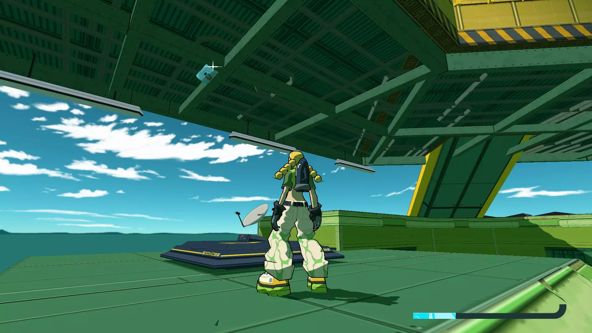 小心背后! - 韦夫 就在布林克终端区索拉斯被悬挂的大门后方。从可滑行的行星环或那里的滑板坡道跳上行星广场周围的电缆,然后在电缆线上滑行,CD就在尽头。