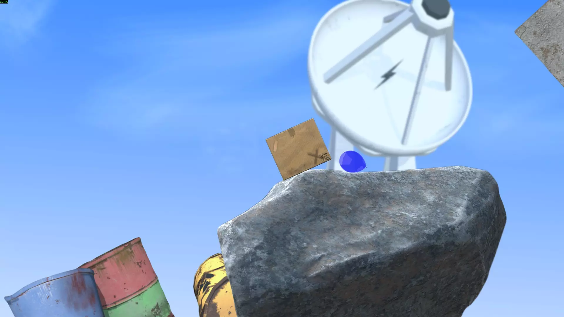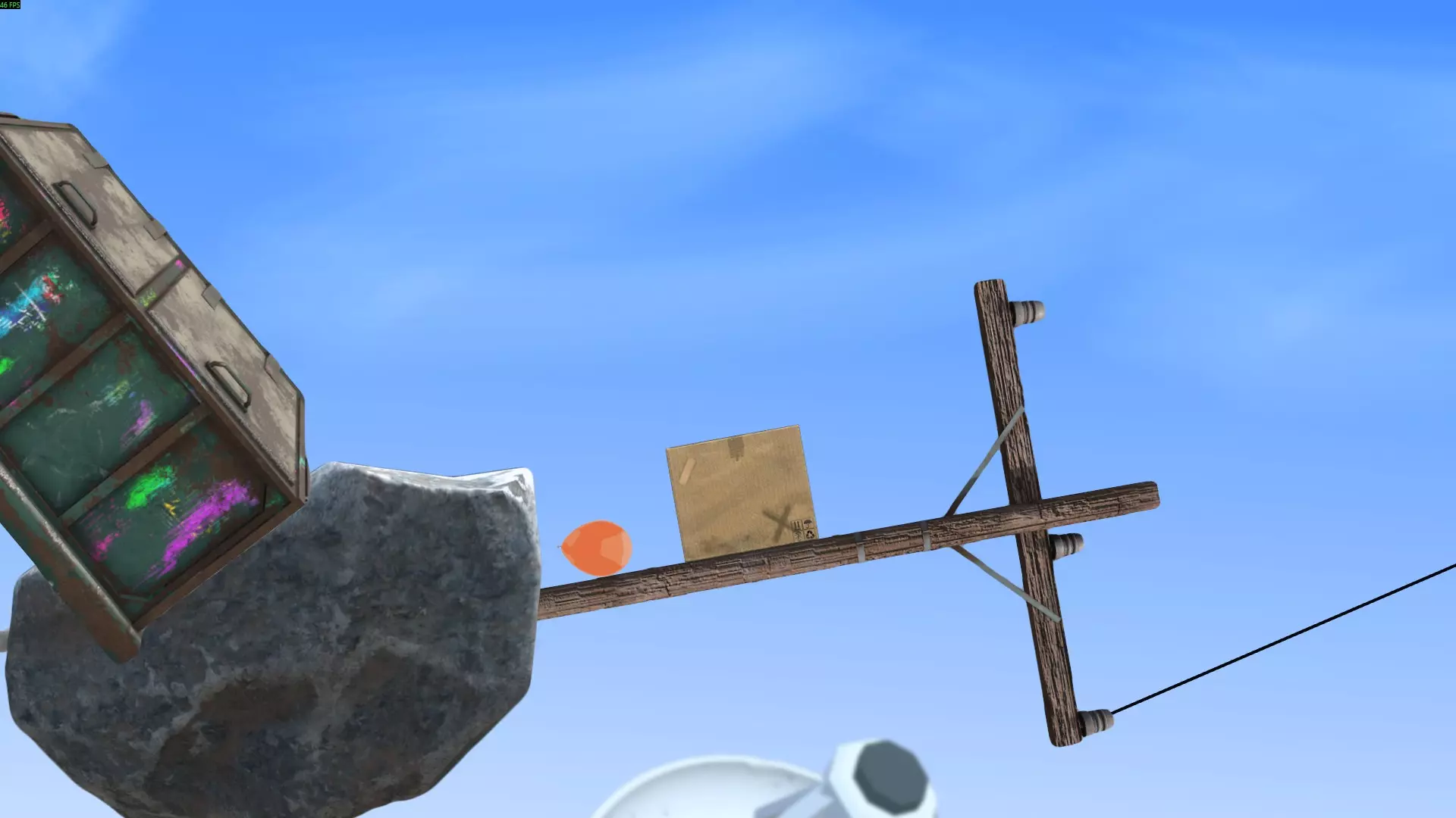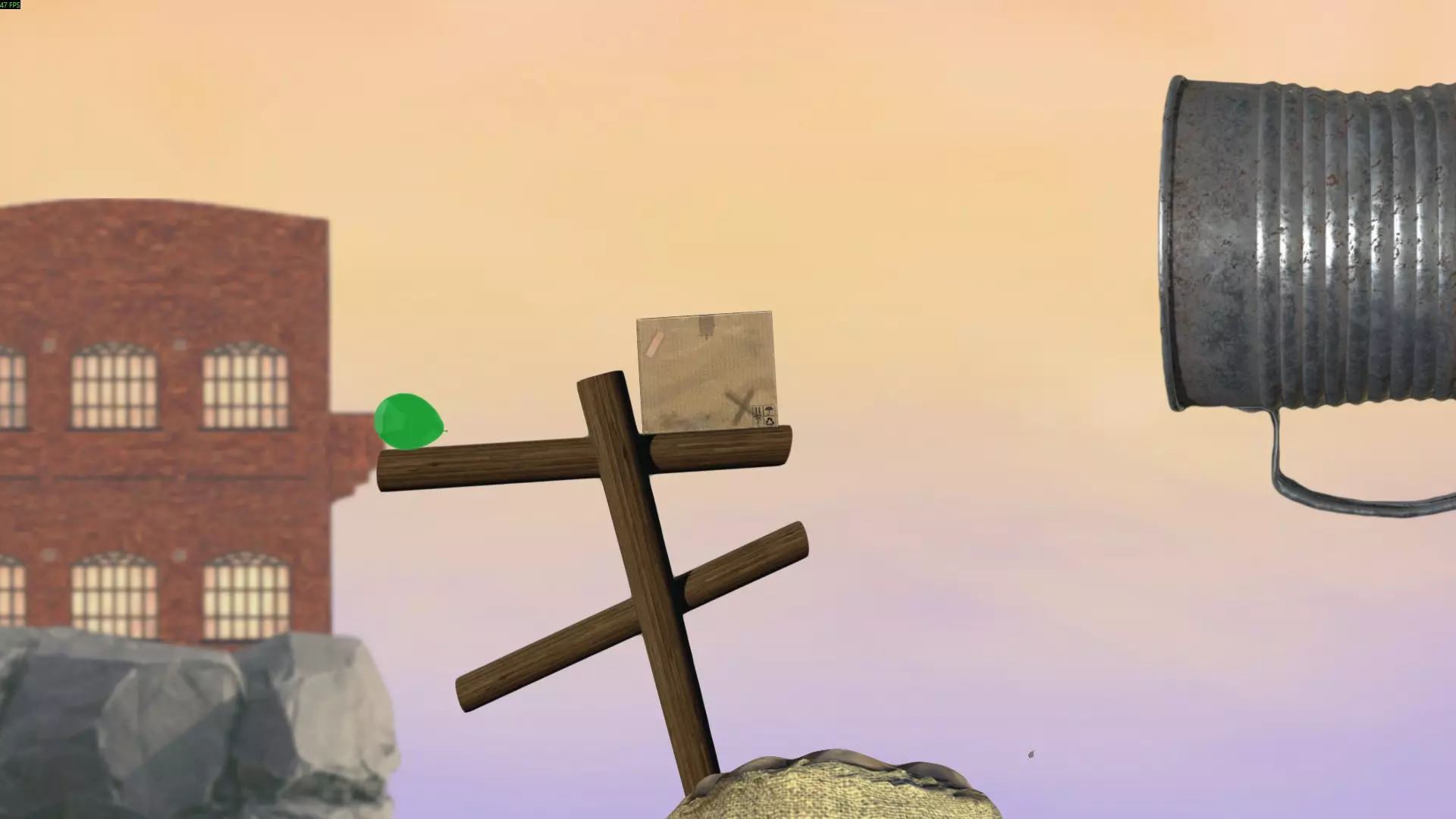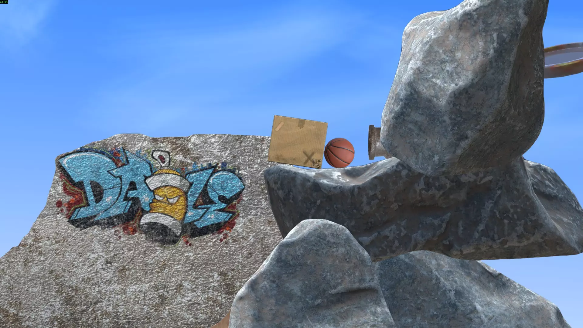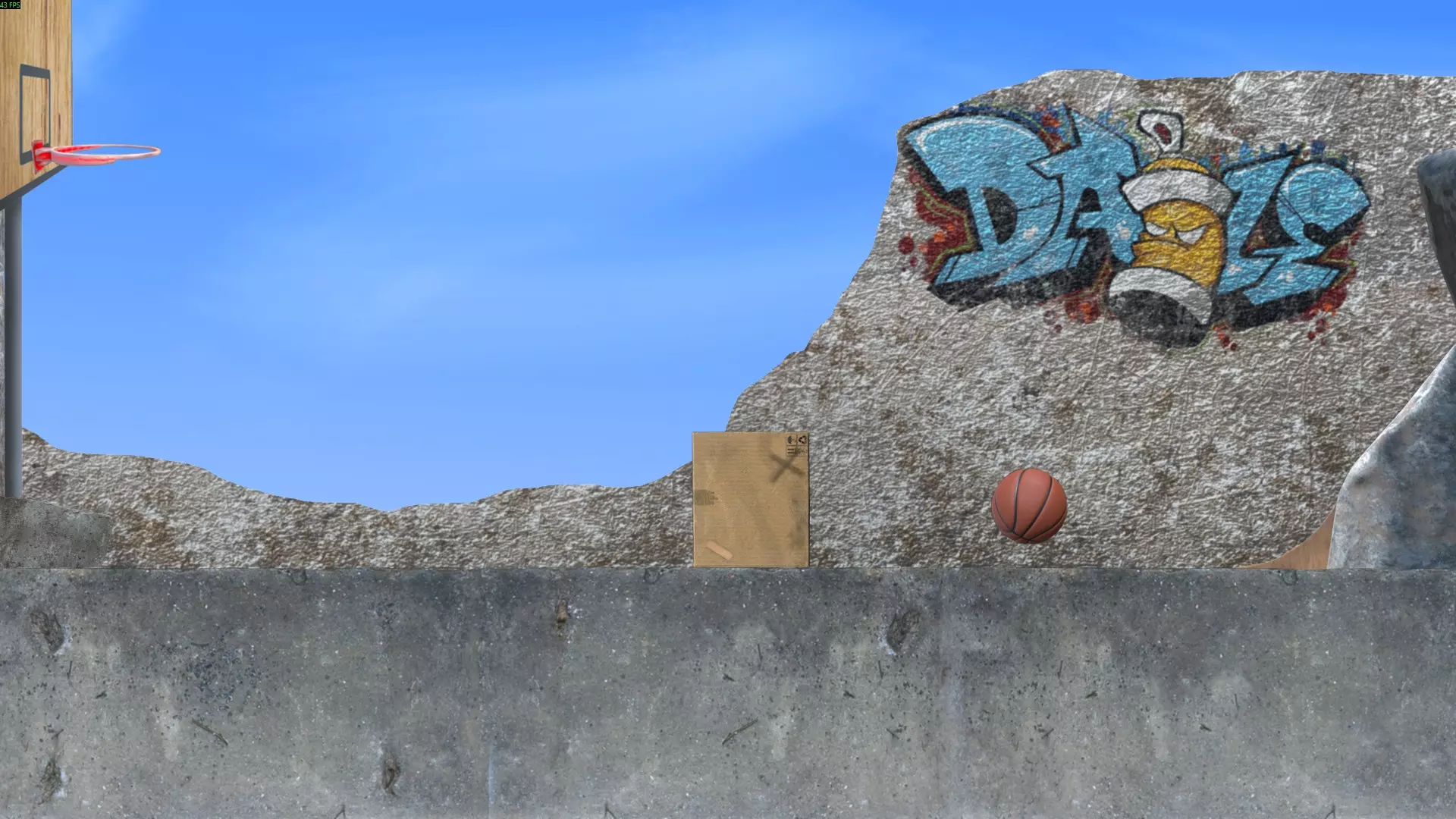 最简单的方法是将球扔到箱子上方,在球落地前,利用箱子的边角将球导向篮筐方向。不断投掷球,直到它进入篮筐。如果球飞出场地范围,它会通过管道回到原来的位置。