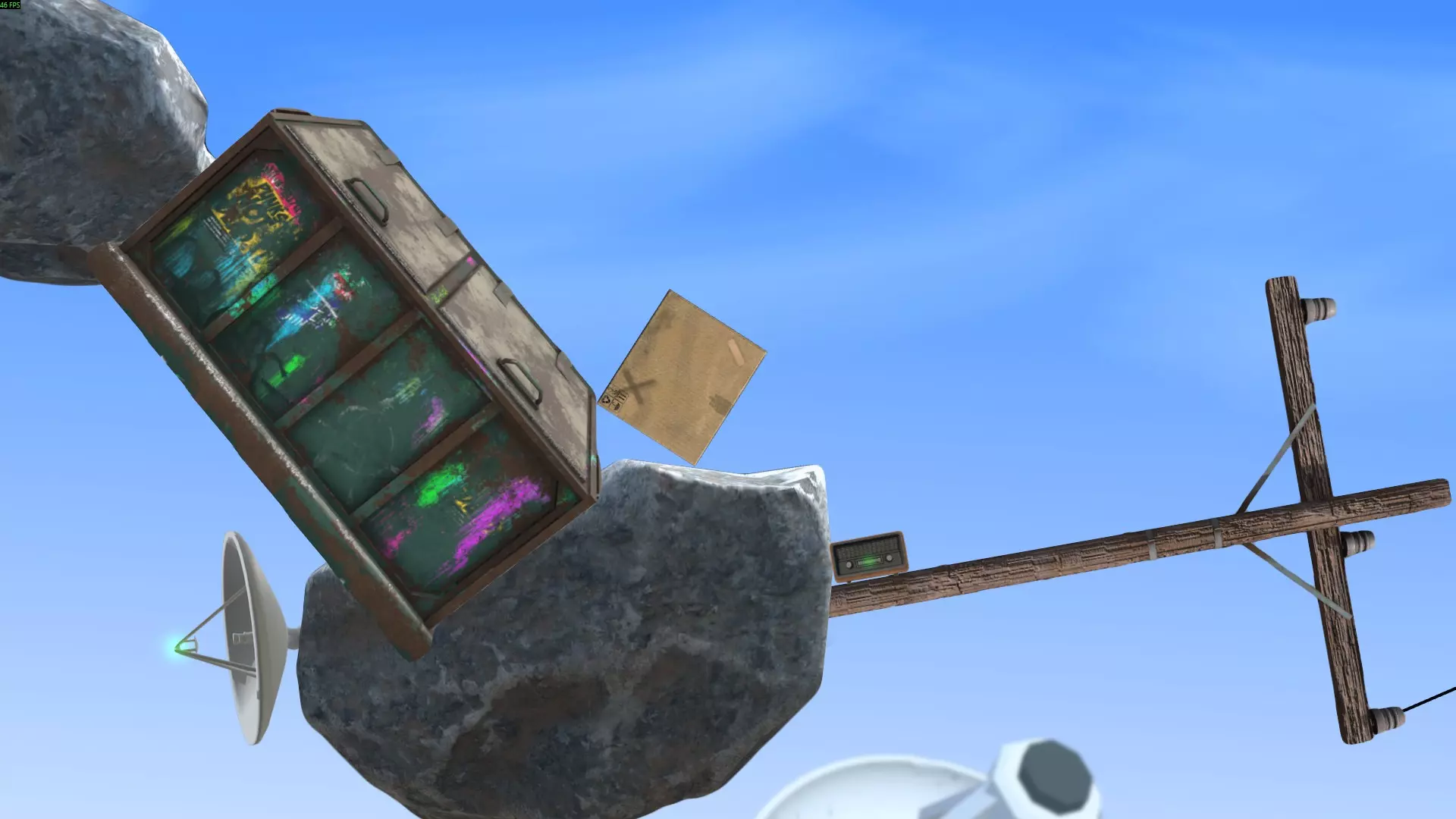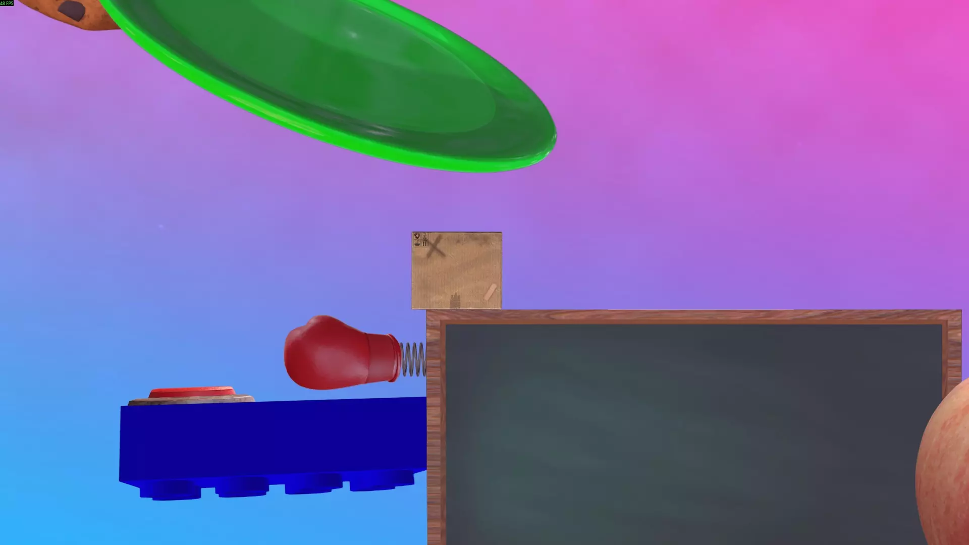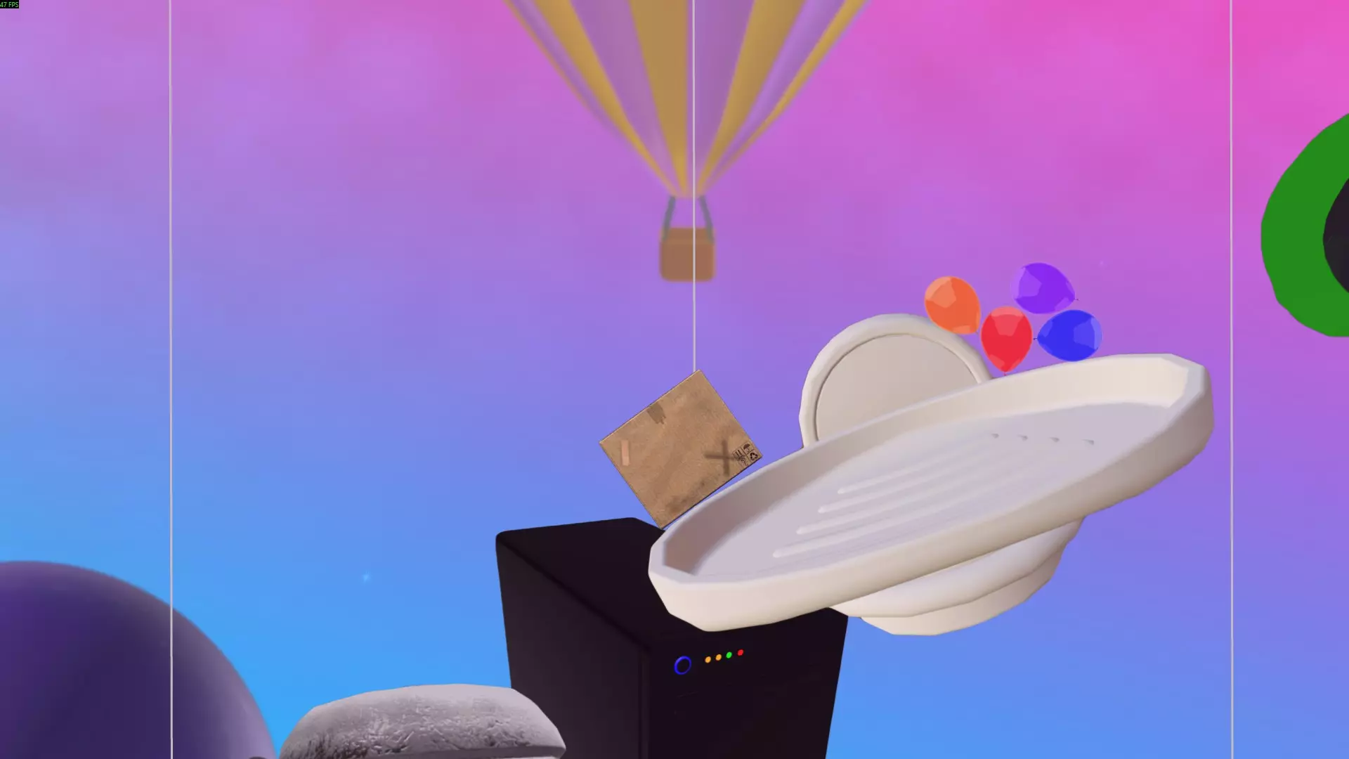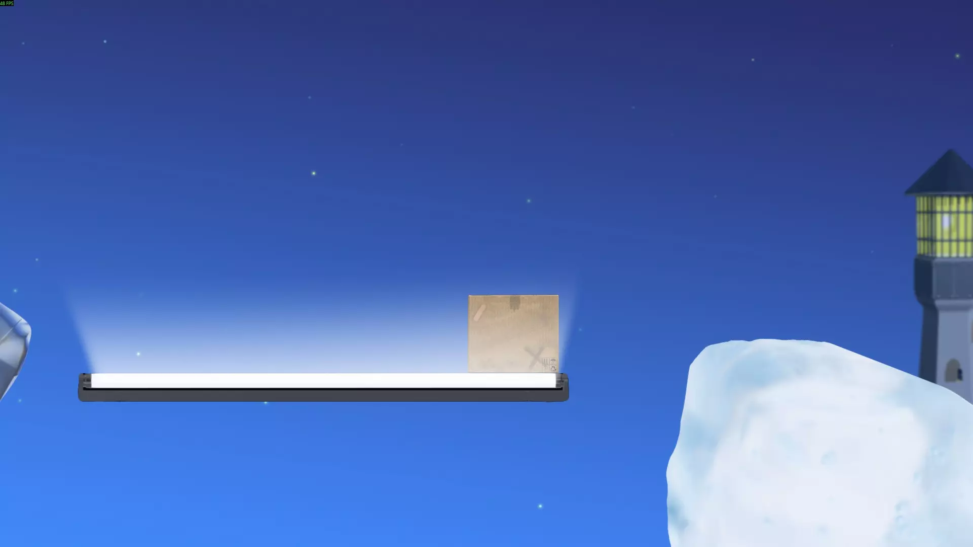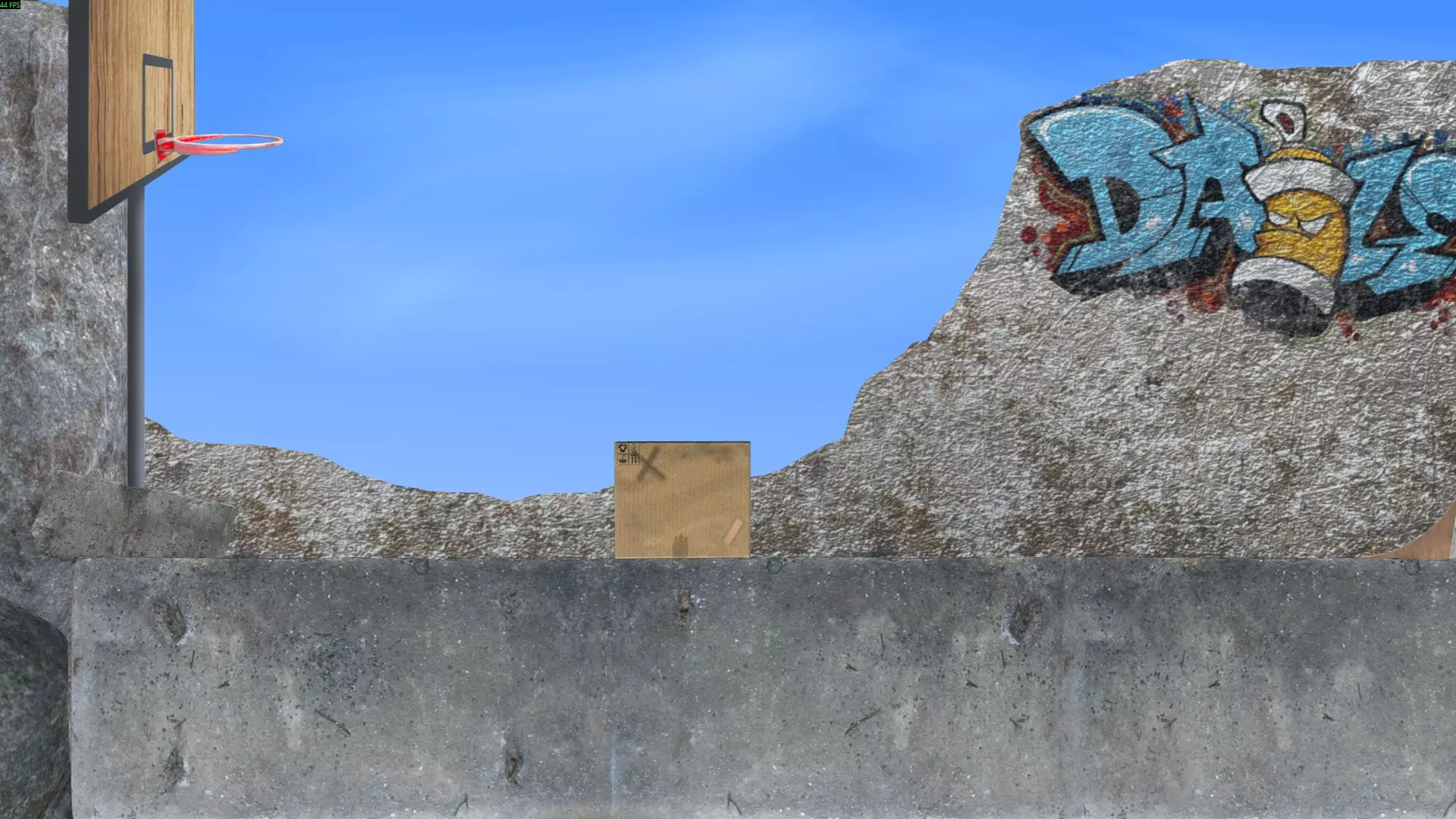 最简单的方法是将球扔到箱子上方,在球落地前,利用箱子的边角将球导向篮筐方向。不断投掷球,直到它进入篮筐。如果球飞出场地范围,它会通过管道回到原来的位置。