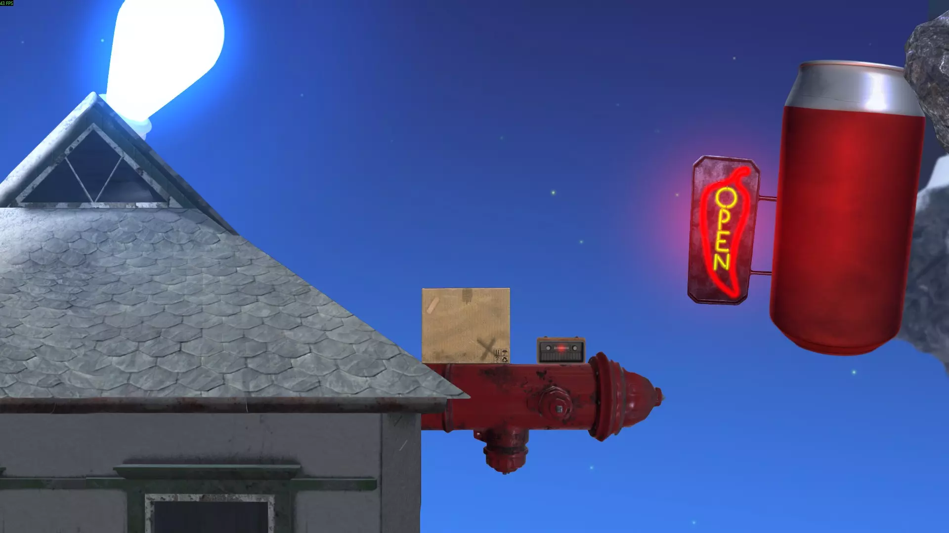然后当他掉下来时,需要把他推到带有辣椒的霓虹招牌那里。