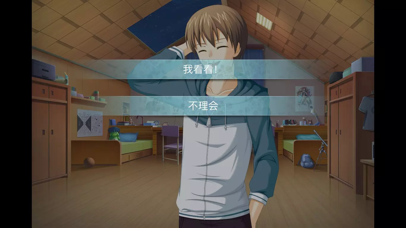 “把它捡起来”(星瑶好感度+2) “无视它的存在” “帮她想办法”(星瑶好感度+2) “劝她回学校” “叫‘师姐’” “学生证给我看看!”(星瑶好感度+2) 9月19日 “快去准备面试吧”(明美好感度+2) “还是算了” “相信老师的推荐” “相信星瑶的话”(星瑶好感度+3,明美好感度+2) “有关光速……”(明美好感度+3) “没有问题了” “拿起来看看”(明美好感度+2) “不管它” 9月20日 “劝她不要在意谈笑老师” “劝她应该主动了解谈笑老师”(明美好感度+2) “9月20日,秋分前两天” “9月21日,秋分前一天”(星瑶好感度+3) “9月22日,秋分那天” 9月21日 “稍微等一会”(明美好感度+3) “先行离开”(星瑶好感度+3) 9月22日 “和星瑶从头开始”(星瑶好感度+3) “很难忘记小玉的事情”“问明美姐该怎么办”(明美好感度+2) 9月23日(关键分支) 如果 星瑶好感度 > 明美好感度+5,直接进入星瑶线,星瑶好感度+3。 如果 明美好感度 > 星瑶好感度+3,直接进入明美线。 否则,出现如下选项: “明天会场见!”(进入明美线,明美好感度+3) “我先问问天文台开放日的安排。”(然后出现如下选项) “决定参加天文台开放日”(进入星瑶线,星瑶好感度+3) “决定参加SAR开题报告”(进入明美线,明美好感度+1) 星瑶线