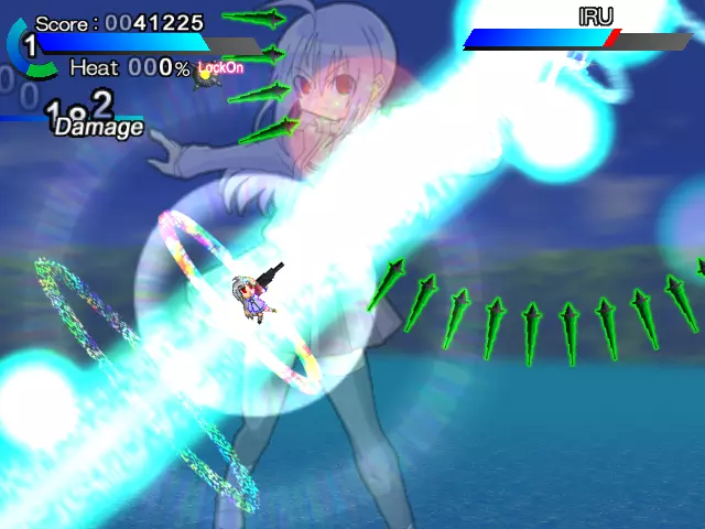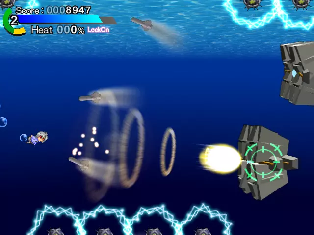 使用光束加农炮的最大蓄力攻击,即使是中型机体也能一击摧毁。 如果已经获得陷阱道具,可以采用一边用陷阱破坏导弹,一边用另一把武器击倒敌人的战术,这种方法十分有效。 从海中浮上后的杂兵敌人突袭,实际上在画面下半部分应战更不容易被敌方子弹击中。为了攻略后续的关卡,最好练习快速击倒出现的敌人,避免被包围。 紧接着会再次潜入海中,迎来中Boss战。 中Boss会占据中央位置,使用水雷和泡泡弹进行攻击。泡泡弹属于光束属性,当它靠近时,通过冲刺即可躲避。偶尔使用Hyper技能破坏水雷,以确保安全区域。上下移动时的复合攻击可以用和常规关卡相同的应对方法处理。 ※关卡2 Boss 伊尔※ 基本模式为:移动的同时向随机方向释放地雷,之后停止移动并发动攻击,如此循环。 停止移动后的攻击有以下3种模式中的一种: ・乱射光束属性的高速子弹 ・乱射直线飞行的高速导弹 ・横向发射缓慢追踪的导弹无论是哪种情况,只要与伊尔保持距离,并围绕伊尔呈弧形移动躲避,基本就不会被击中。 当剩余体力只剩1格时,伊尔会发动超必杀攻击。它会朝苏古丽所在的方向发射光束,并且在侧面±90度的范围内展开绿色的针状实弹。 光束的威力较高,乍一看是很棘手的攻击,但可以在它准备动作期间调整位置来迎击实弹,或者通过冲刺穿过光束中央等方式,根据距离判断安全的躲避方法。