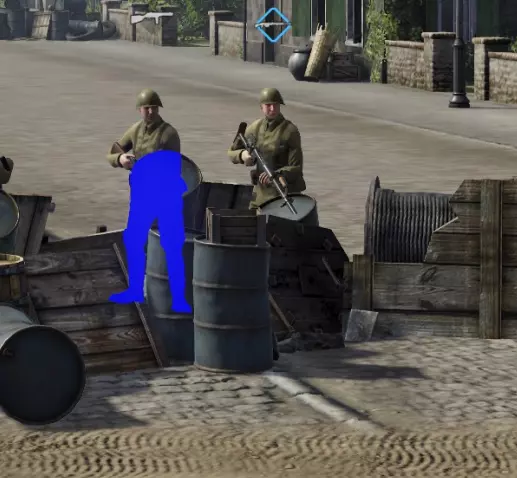 + 若障碍物高度为人物身高,单位在换弹时不会探身 - 可被坦克穿甲弹击穿 掩体