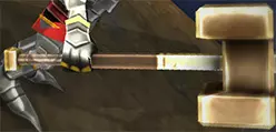 锤子(双手) 你的次要技能被替换为圆形冲击波,可击中战士周围1格范围内的所有敌人,并将他们击退1格。伤害似乎在武器伤害的80%到100%之间。 锤子是一种不错的武器,但使用起来可能会有些令人沮丧。要理解其中原因,我们需要谈谈三个方面。首先是攻击距离:它并不比任何单手武器的攻击距离长多少。其次是击退效果:每次用锤子攻击都会将敌人击退。这就产生了问题,因为这往往会使敌人超出后续攻击的范围。第三个令人沮丧的地方是连击的第一次攻击,接下来我们就来看看。 连击: 连击的第一次攻击是战士直接砸向他们正前方的地面。第一击会向前但略微偏右攻击。有时,它会打不到站在你正前方但略微偏左的敌人。其攻击范围也小得可怜,比单手武器连招中的对应攻击范围还要短。 连招的第二击,战士会从身后左侧将锤子挥向身前。这一击实际上相当不错:战士挥锤的弧度约为270度。也就是说,它基本上能击中你周围的所有敌人。 连招的第三击,战士从左侧开始挥击,原地旋转一又四分之一圈。这一击的优势在于能快速对前方和左侧的敌人造成两次打击。但它存在一个问题。正如我之前所说,锤子的所有攻击都会将敌人击退。这意味着,当你进行第三次攻击时,目标通常已经脱离你的攻击范围。即便战士在攻击时会向前迈出几步,也不足以弥补这个距离。大多数情况下,你需要在第二次攻击后取消连击,除非你面对的是那些免疫击退效果的敌人,包括木乃伊、僵尸、巨魔、牛头怪以及大多数小Boss。
