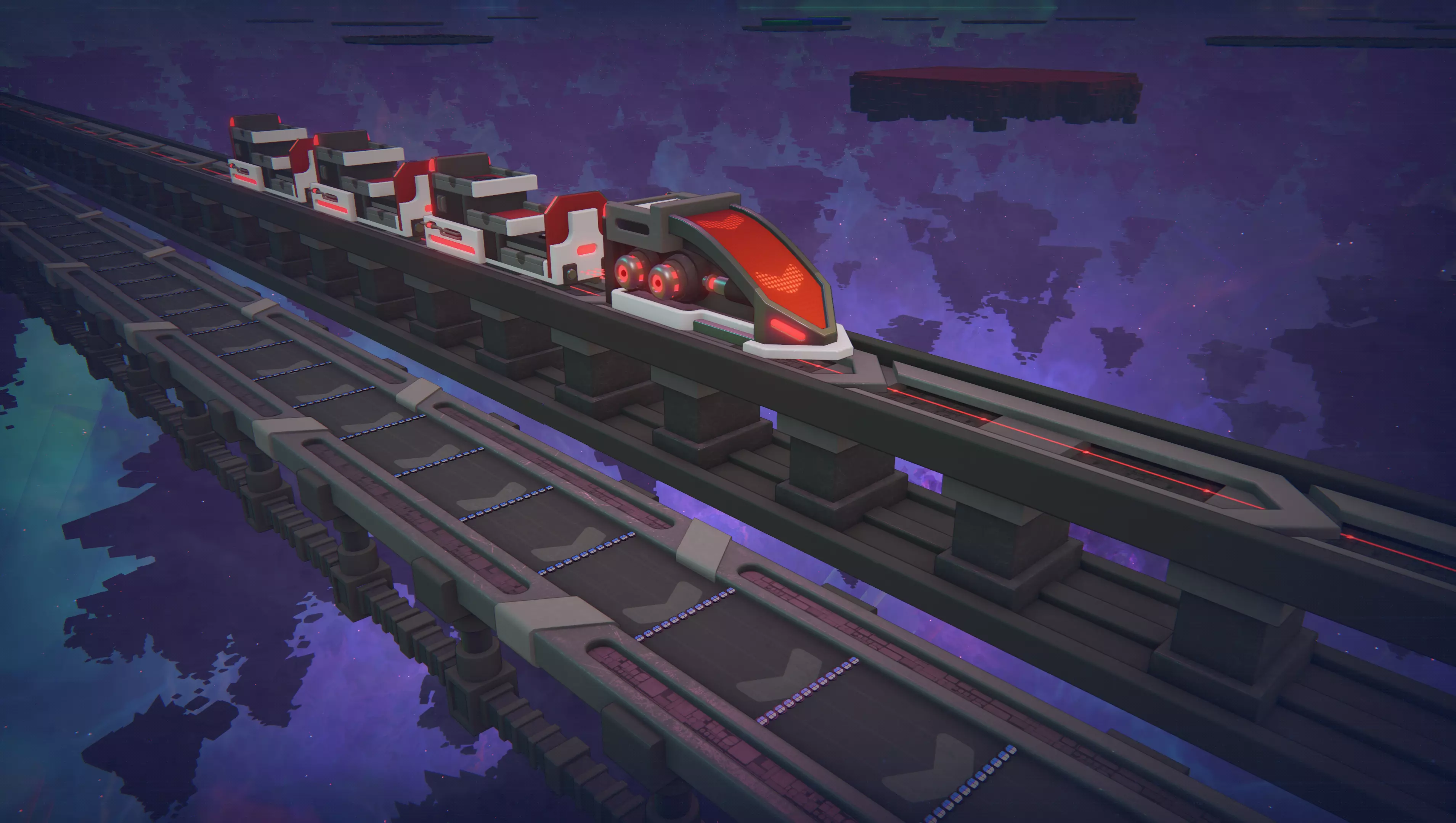 《异形工厂2》的真正挑战在于,如何在借鉴其他工厂类游戏中已有的成熟机制(例如火车系统)的基础上进行创新,使其具有《异形工厂》系列的独特性。社区在这一过程中提供了极大的帮助,他们深度参与了开发。早在《异形工厂2》抢先体验版发布前,我们就针对火车系统的多个迭代版本以及游戏的其他诸多元素,向社区征集了想法和反馈。 《异形工厂2》抢先体验版发布 说到这里,抢先体验版已于2024年8月15日正式发布!《异形工厂2》在保留初代《异形工厂》核心玩法的基础上,以全新的3D世界、全新美术风格和更大规模带来了焕然一新的体验。太空传送带将平台连接在一起,管道取代传送带用于颜料运输,火车还能直接驶入漩涡之中。太棒了。 《异形工厂2》的3D特性让我们有机会将所有建筑设计为开放式且带有动画效果,这正是该游戏有别于其他大多数工厂类游戏的特点。你可以清晰地看到每个形状被分割、涂色、堆叠——各种加工过程尽收眼底!这不仅极具观赏性,还能帮助你准确理解每个建筑的具体功能和运作原理。这一点我们深感自豪!回顾开发历程,《异形工厂》更像是《异形工厂2》的原型,而非《异形工厂2》仅仅是《异形工厂》的3D版本。当然,《异形工厂1》也有许多值得喜爱之处。