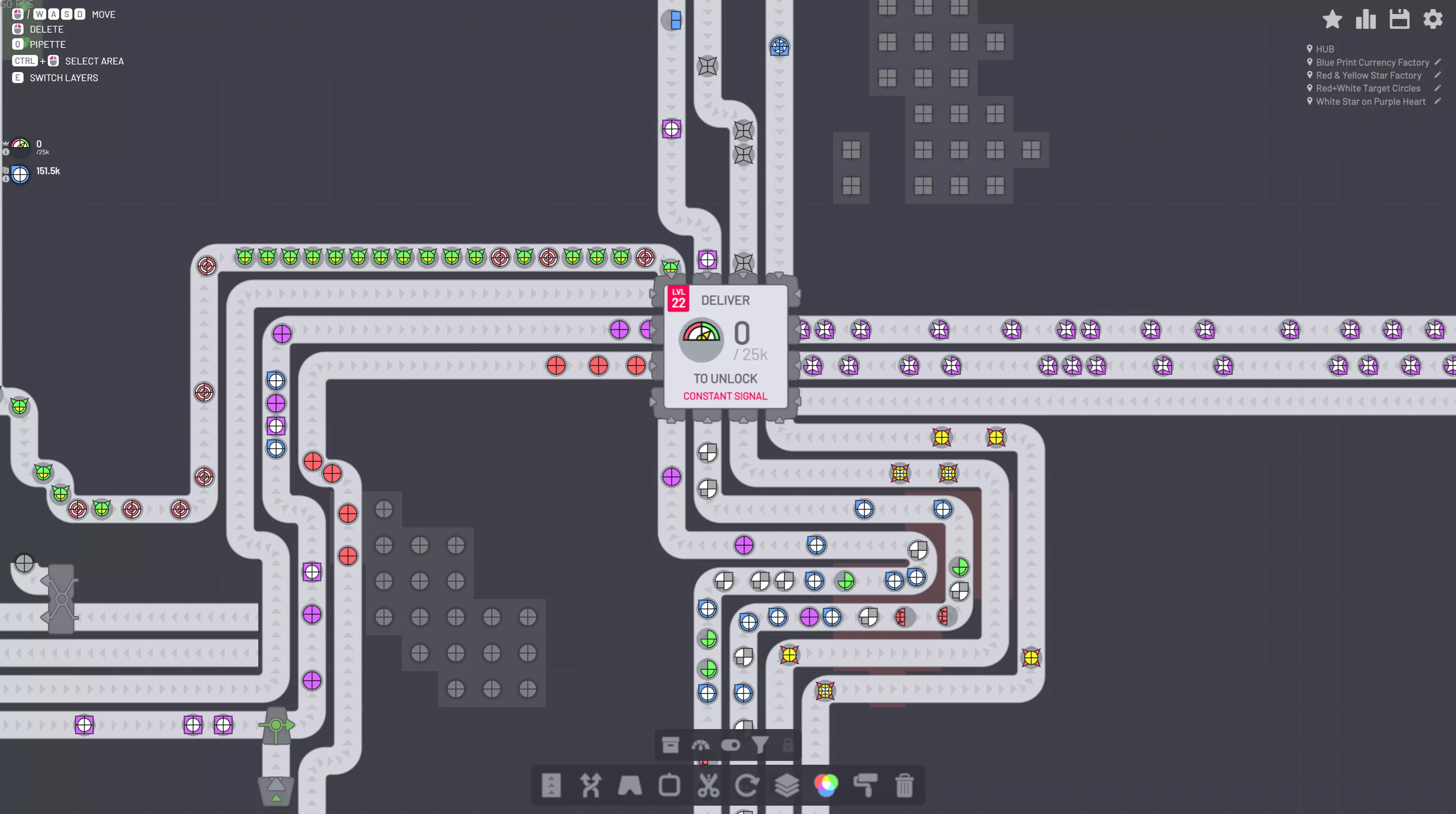《异形工厂》的开发历程 2020年初,《异形工厂》作为个人项目开始开发。如果你还未体验过该游戏,它是一款简约风格的工厂自动化游戏。在游戏中,你可以在无限扩展的地图上对图形进行切割、旋转、涂色和合并操作,逐步制作出更复杂的形状。该作与《异形工厂2》并非完全不同,只是在外观上略有差异。