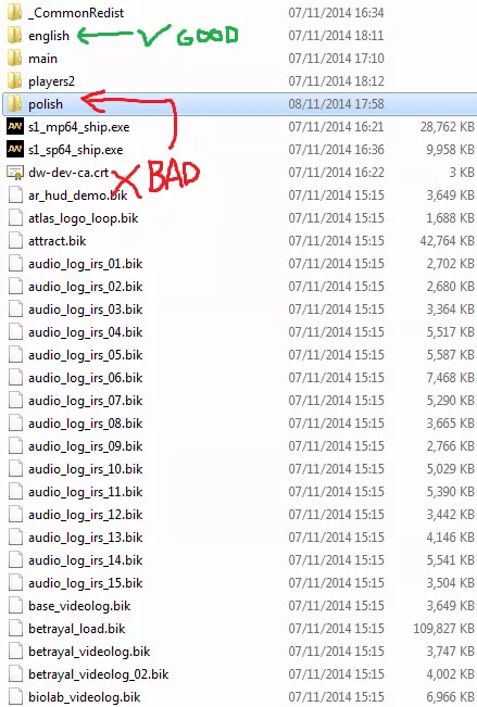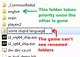 你需要从第三方下载一个名为“english”的文件夹。你也可以通过U盘从朋友那里获取。 现在找到你当前的语言(在这种情况下是“polish”)。如果你的游戏是德语,那么该文件夹将被命名为“german”等。 将内容解压到你的“english”文件夹中并替换旧文件 步骤3 重命名它。