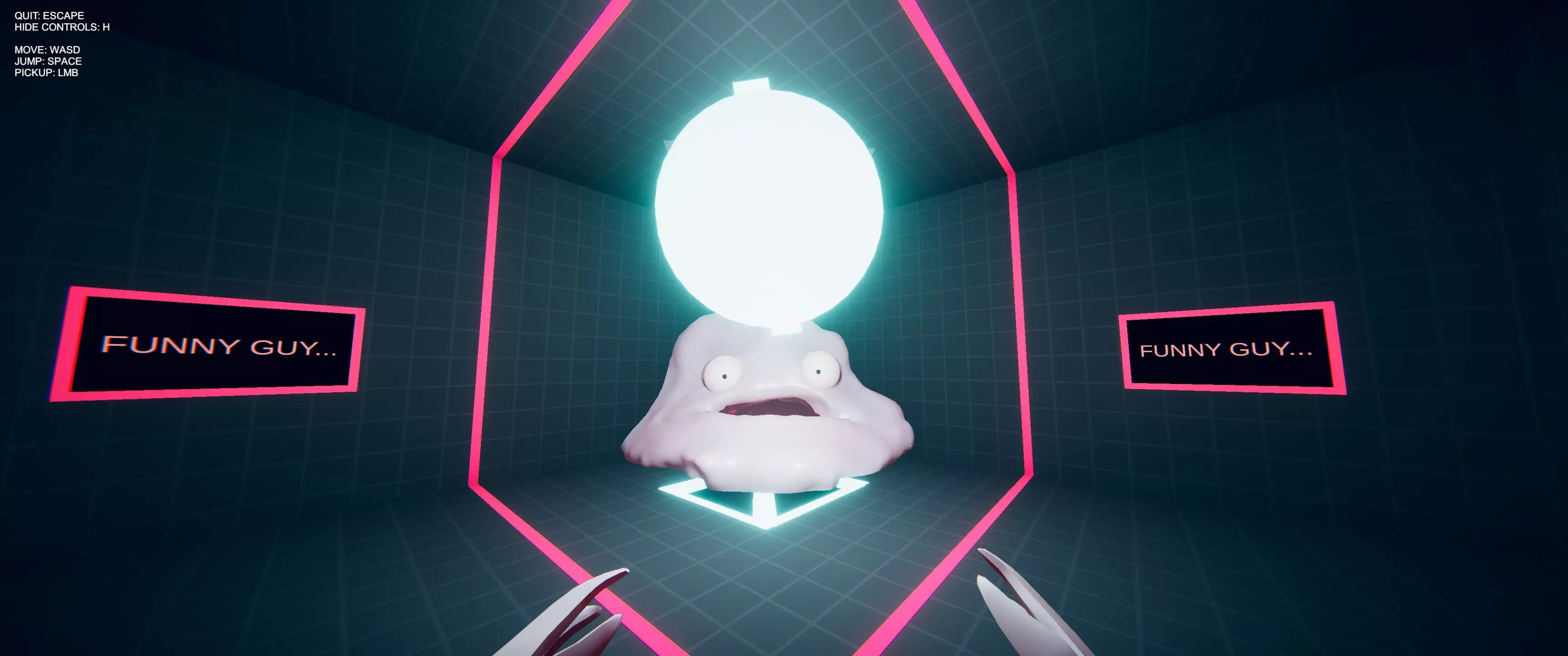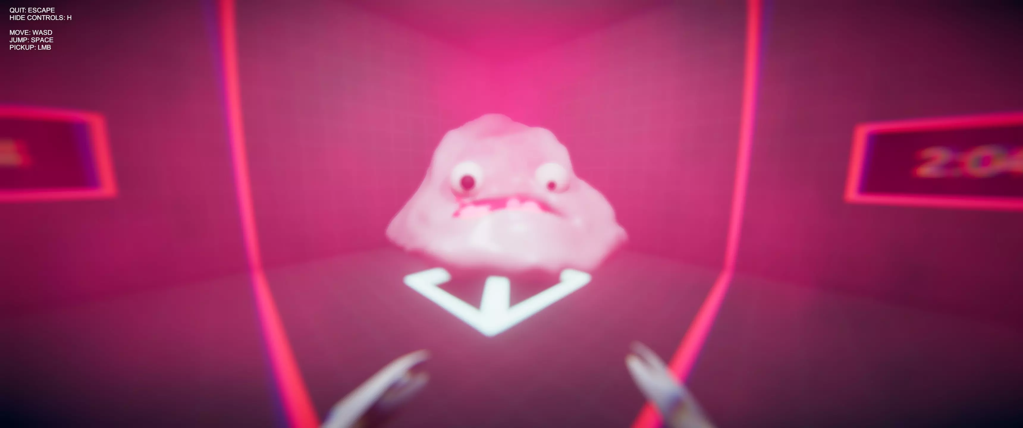 毒结局 -等待10-15秒,立方体就会生成(它们会在角落的投掷点对面)。 -不要听那个生物的话,而是往它嘴里放入任意数量的立方体(数量无关紧要)。 -这时, blob会告诉你它们有毒,它的嘴会开始冒泡沫。 -粉色气体将充满房间,最终你会失去意识。 -这就是结局2。