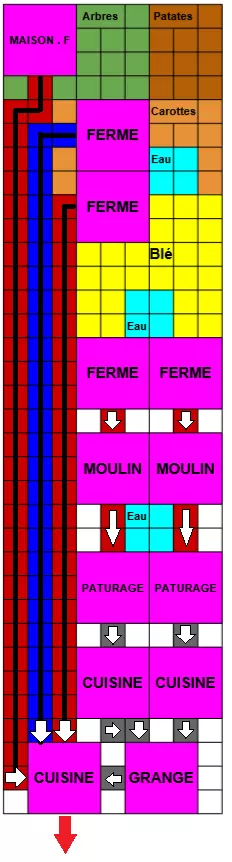 一份肉炖菜=16个红币 详情与规划 农场尺寸为9×34。 此布局已优化。 建筑等级: 森林小屋:1级 胡萝卜农场:1级 土豆农场:1级 小麦农场(2个):5级 磨坊(2个):5级 牧场(2个):1级,但已升级2次 牛排厨房(2个):1级 炖菜厨房:5级