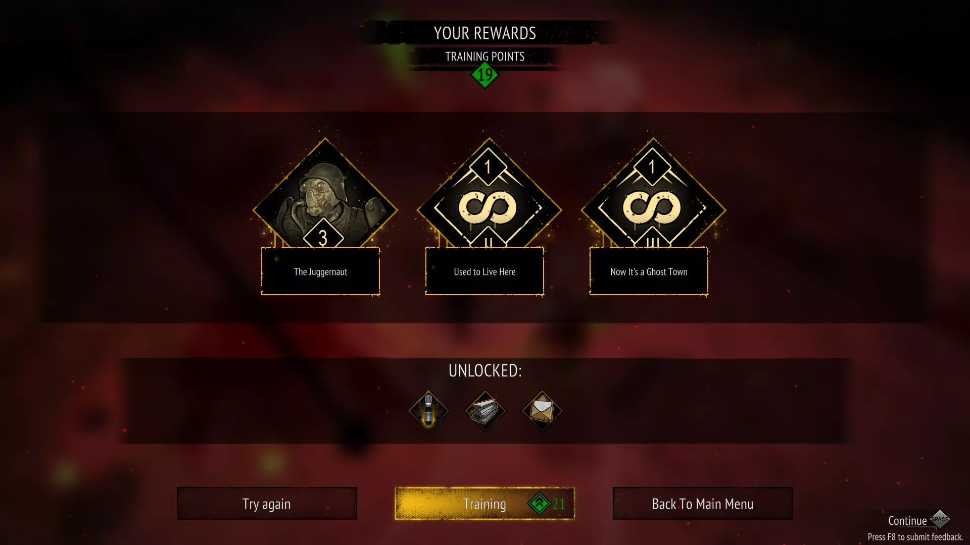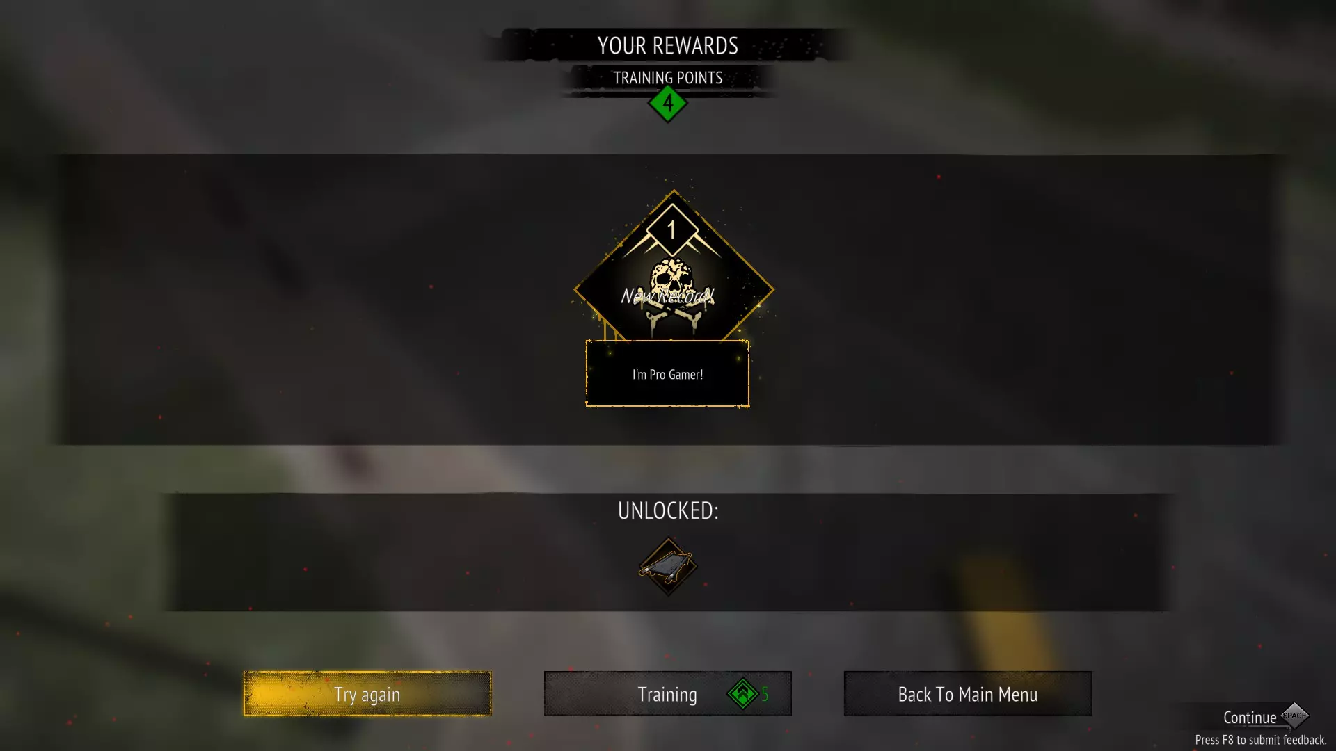无需额外投入的简单成就 ----------------------------------------------------------------------- 无需额外投入的简单成就 ----------------------------------------------------------------------- -------------------------------- 技能 --------------------------------- 只需升级并提升技能即可。 Death From Above 在默认模式的单次游戏中使用技能50次 Power Overwhelming 将一项技能升级至最高等级 只需拥有多个角色并获取多个角色的技能。 Eye Candy 同时激活5个技能 ------------------------ 物品 ----------------------- 打开橙色箱子并获取物品。 Free Items!装备一件物品 战争机器 单次游戏内装备5件物品 ----------------------- 我在没太注意的情况下就获得了这个成就,很可能是用了杀戮狂热强化和坦克角色的火箭筒模式。 It's Over 9000! 5秒内造成超过9000点伤害 ----------------------- 死了就行 诅咒笼罩的恐怖之夜 被不死生物吞噬 ----------------------- 我记不清了 别抱我,我害怕 换种方式向它们表达“爱意” ----------------------- 我觉得需要解锁无尽模式或者在一次游戏中存活下来。又一个僵尸幸存者 见证新黎明的到来 天降猛男 -------------------------------------- 有点随机的成就 ------------------------------------ 天降猛男 对布娃娃物理效果进行压力测试 我在2分XX秒时解锁了该成就。 我认为需要击杀第一种类型的僵尸。 奔跑者或其他类型不算。 我觉得不能超过4/5分钟。 我使用坦克角色,并将其主武器升级到火箭发射器1级。 当我获得火箭发射器2级的升级时,我禁用了该升级以避免再次遇到。 然后,我冲进一群僵尸中,我的角色发射火箭弹,随后我就获得了成就。 我尝试了5次才获得该成就。以下是我提出的改进建议: