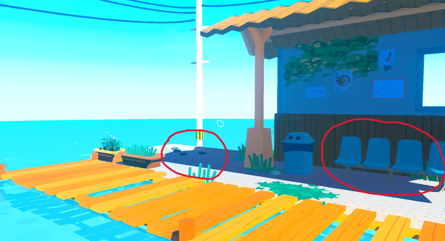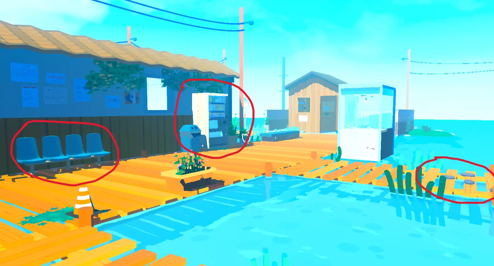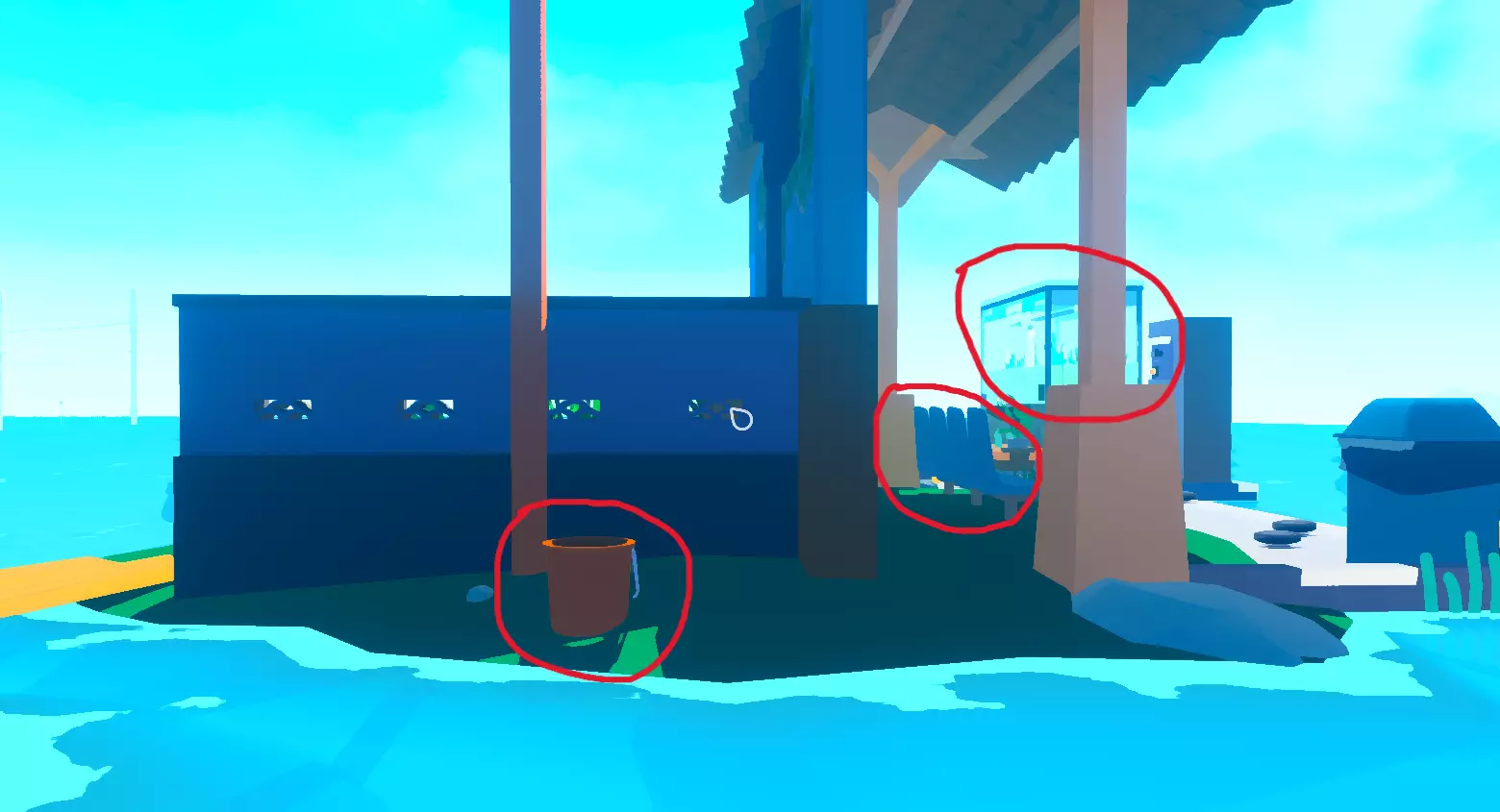 第二座岛(船对面) 第七个水桶 椅子 第二台娃娃机