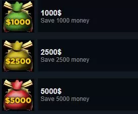 5000美元 节省5000美元 每次使用射击场,最终得分的1%将转化为金钱。如果玩家获得2000分,将赢得20美元。要获得前面列出的三个成就,只需反复进行射击场训练,直到获得足够的金钱。 起初,由于获得的金钱较少,进展非常缓慢。一个加快进程的好技巧是攒够316美元购买弹夹,因为它的容量和射速都要大得多,从而能更快地获取金钱。