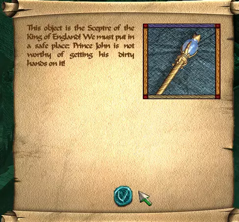 第七件物品可在诺丁汉的【逃脱】关卡中找到。解救监狱中的罗宾后,你可以潜入国王的房间,与一名红色骑士战斗以获取皇家印章。