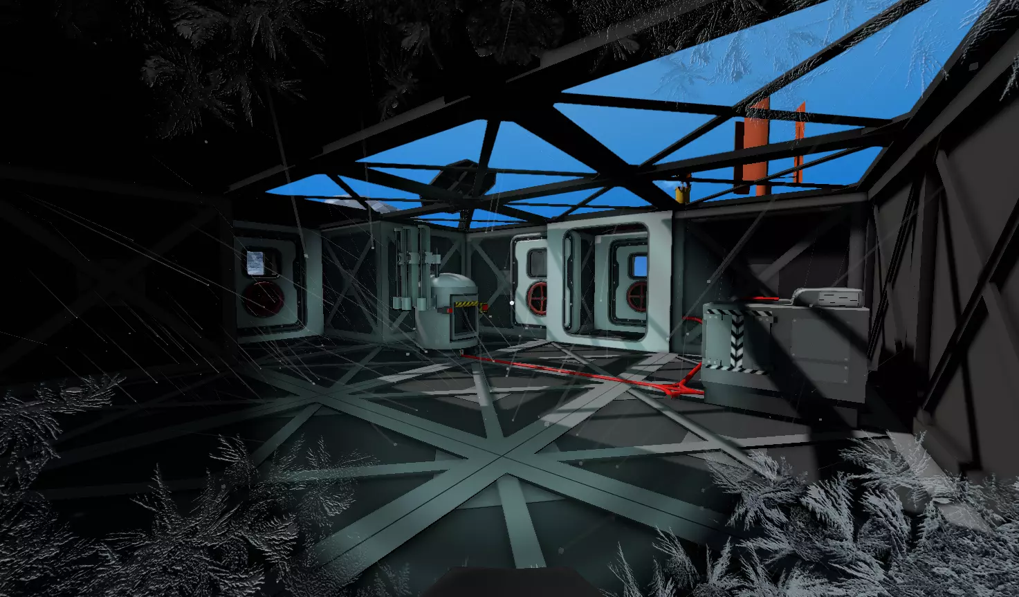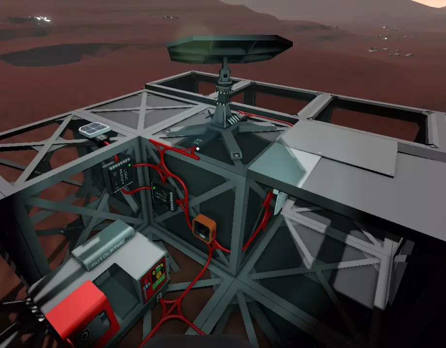 没有生长灯的情况下,阳光强度也足以种植植物,但土豆的生长速度会非常缓慢。 就像在火星上一样,第8天会有风暴来临,所以要把太阳能电池板放置在窗户后面。 【传感器镜头】 最好尽快开始将熔炉产生的热气储存在隔热储罐中。这样,你就能轻松使用管道散热器为木卫二上任何地方的大气加热,从而扩展你的基地。