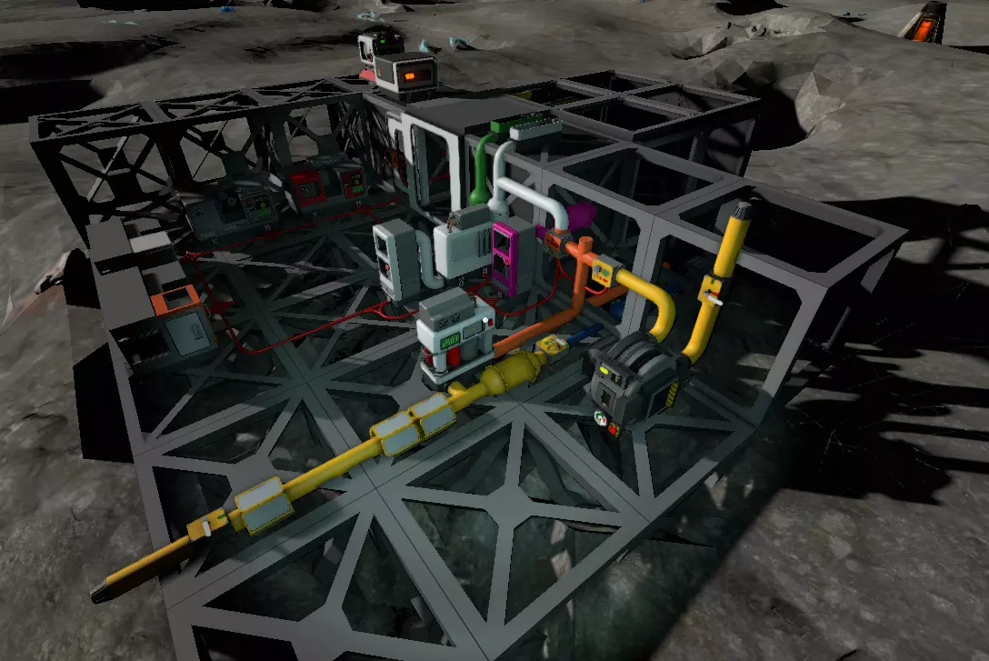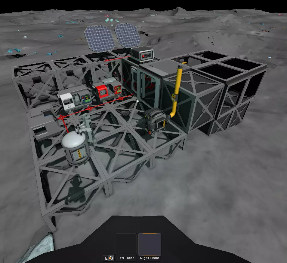 通过适当的碎冰和过滤,填充我们的储气罐将变得更加轻松高效,使用熔炉进行冶炼也是如此。 配备四块太阳能电池板后,所产生的电力足以让电弧炉在非理想环境下运行。因此,一个简约的自动电弧炉在月球上能很好地工作,同时也是一项很棒的编程练习。