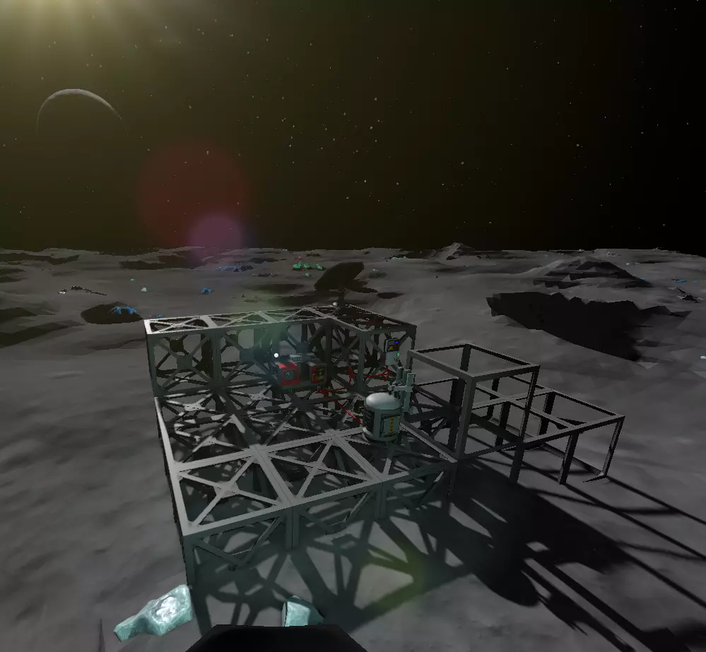 接下来几天,开采并储备所有基础合金。用这些合金升级工具打印机,制作重型采矿钻。 在这期间的夜晚,用多余的铁、铜和金来完成温室的建造。在月球上,太阳本身就可以很好地充当生长灯和加热器,所以你唯一需要做的就是将水粉碎后放入一些水培托盘。 用这些合金制造高级熔炉,然后用它来生产超级合金因科镍合金。制作传感器透镜需要5克因科镍合金。 拥有所有基础合金、一种超级合金和一个完工的温室后,月球上的第二阶段和第三阶段就同时完成了。现在进入第四阶段。 到目前为止,你的温室可能因为太阳加热而变得相当热。为你的月球基地降温应该是你的下一个优先事项。一个主动排气口、单向阀、被动排气口以及一些管道散热器的组合效果非常好。