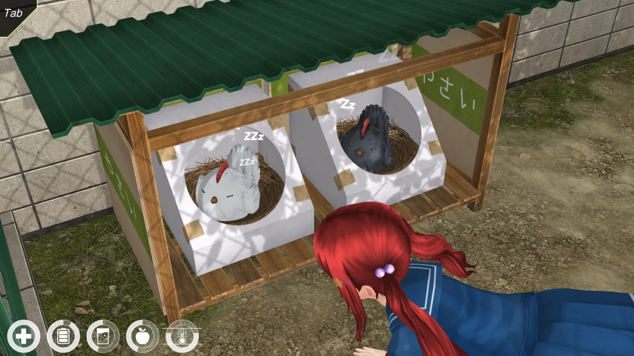 鸡有两个用途:1)获取免费鸡蛋(每天一次)。2)抓住并抱着鸡可以减轻压力。