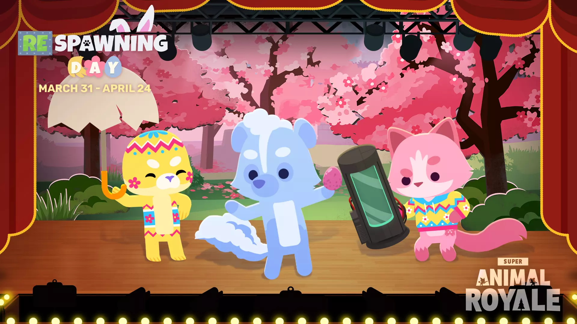 第一周活动现已开启,以下是您可立即解锁的内容: 5项挑战奖励可获取: - 复活节彩蛋套头衫:收集超级彩蛋(1000个) - 1500经验值:击碎法贝热巨型鸸鹋蛋(7个) - 蛋壳雨伞:用香蕉滑倒敌人 - 750卡尔币:摧毁臭鼬蘑菇(5个) - 孕育舱近战武器:击破敌人护甲(50次) 全新超级动物品种: 超级云臭鼬(等级20级解锁) 香蕉蟹狂潮: 更新后的首48小时内,香蕉蟹将在海滩大量出现,带来一场滑溜溜的愚人节狂欢。注意脚下,触碰它们会让你滑倒!狂潮结束后,香蕉蟹将作为永久新增的可捕捉昆虫留在社交中心,但会变为更稀有的传说级生物。和往常一样,活动期间推出的全新超级动物品种将永久在研究实验室中开放获取,因此解锁它们并不存在时间限制。祝大家寻蛋愉快! 游戏玩法调整 1. 复活舱的复活计时器已调整。复活一名队友现在需要9秒,复活两名队友需要11秒,复活三名队友需要13秒(此前无论复活多少名玩家,均固定为9秒)。 2. 相应地,复活的队友数量现在取决于你开始复活时收集到的复活瓶数量。在复活过程中拾取新的队友复活瓶不会将该玩家加入当前复活队列,因此你需要取消并重新开始复活以包含他们,或者寻找另一个复活舱。1. 修复了DNA磁铁应用不正确的问题。 2. 修复了武器拾取文本未使用正确拾取翻译的问题(主要针对俄语)。 3. 修复了超级炸弹在仓鼠球比赛中跟随玩家时的图形,使其使用正确的设计。 4. 修复了玩家在仓鼠球比赛的“你的队伍”结果中总是显示为第一名的问题。 5. 改进了近战武器可能穿透电锯商店左墙的问题。 6. 修复了表情动作音乐使比赛准备就绪音乐静音的问题。 7. 修复了玩家未准备就绪时,在MTN车站仍播放环境音乐的问题。 8. 修复了 royale 逃生菜单上的返回按钮无法点击的问题。 9. 修复了制作人员名单视频中的打字错误。 10. 私人比赛:修复了处于幽灵状态的玩家无法看到管理员消息(如命令确认)的问题。【超级好友】功能现在将持续尝试重新连接,而非在3次尝试后停止,且每次尝试的间隔时间更长。 更新【超级好友】的Photon SDK至最新版本,修复了因与好友断开连接导致的延迟峰值问题。 修复了之前断开连接后,再次连接【超级好友】时好友状态未设置为“在线”的问题。 修复了【超级好友】名称中显示富文本的问题。 修复了打开快速聊天轮盘时仍能与物体交互的问题。 修复了打开esc菜单时快速聊天轮盘未关闭的问题。 修复了完成比赛后地图图标可能丢失的bug。 修复了环境阴影轻微穿透角色的问题。 修复了队友屏幕边缘标记在重生后未恢复正常的问题。1. 修复了透明GIF中照片亭里SAR标志不显示的问题。 2. 修复了巨型树懒寻路范围偶尔过大导致无法在某些区域行走的问题。 3. 修复了短蓄力的弓与麻雀射击无法命中鸸鹋 hitbox 内部的问题。 4. 修复了玩家在特定条件下可以对墙后的鸸鹋进行近战攻击的问题。 5. Twitch 掉落:超级春季动物复活坦克的冷却时间也从10秒增加到20秒。这些改动旨在让复活坦克在尝试大规模翻盘时风险更高,且更难连续使用。 超级激光充能后的前5发子弹现在无后坐力(根据Discord用户Bloop的建议)。这使其在短 burst 射击时成为更易预测的爆发武器。 在双人组队和四人组队模式中,复活坦克图标现在会显示在地图上。 当玩家或放置的香蕉位于战利品后方时,战利品会在短暂延迟后视觉上淡化。这有助于防止某些表情动作或超级动物品种让玩家在战利品堆中隐藏过好的极端情况。 已添加始终显示武器皮肤特效的新设置,且默认开启。此更新内容允许所有人听到自定义枪支音效,例如【泥土左轮】的音效,以及看到自定义投射物,例如【红衣主教弓】和【麻雀】的投射物。 缩短了枪管爆炸的击倒持续时间,从1.3秒减少至1.2秒。同时缩小了枪管爆炸造成击倒的范围,从21 SAU调整为16 SAU。 略微提高了扶起倒地队友时的移动容错率。 闪电效果的亮度降低了50%,持续时间则从1.8秒延长至2秒。 私人比赛中可使用/giant指令召唤巨型树懒。祝你好运。 为私人比赛新增/altars指令,用于禁用香蕉祭坛。 社交中心改动 欢迎中心以及SAW实验室东北方向的新陨石地点新增了NPC。这些NPC处可接取新的任务链。- 若将鱼饵抛到鱼嘴前方,鱼咬钩速度将大幅提升。成功抛投到有效位置时,会播放特效和音效。 - 新增第六条仓鼠球赛道:沼泽风径。 - 仓鼠球比赛的起点/终点线现在与 checkpoint 具有相同的发光和渐变效果。 - 现在可以选择全部三个追踪任务,并进行开启/关闭切换。同时新增了自动追踪的开关设置。 - 珍珠在背包中的堆叠上限调整为20个。 - 胜利岛花园进行了以 DNA 为主题的美化更新,新增了花朵,迎接春日到来! - 用近战武器攻击 NPC 时,会播放受击动画。 - SAW Security 区域新增了一台收音机,会播放歌曲。如果去拜访那些好狗狗,不妨听听看!Catfive的耳机现在会播放循环音乐。 降低了超级狗和海狸的部分语音音量。 早期教程对话已进行精简和删减。 修复了多个NPC和任务对话中的拼写错误。 UI变更 在BananOS中添加了优惠券代码界面,现在除了主菜单外,你还可以在社交中心的游戏内兑换优惠券。 现在可以在地图界面查看进行中的仓鼠球比赛,并直接从地图加入! 自定义界面现在默认将控制器选择设置为左侧类别按钮,退出物品网格时会先返回到左侧按钮,然后再退出到预设界面。 诸如弓与麻雀之类的充能