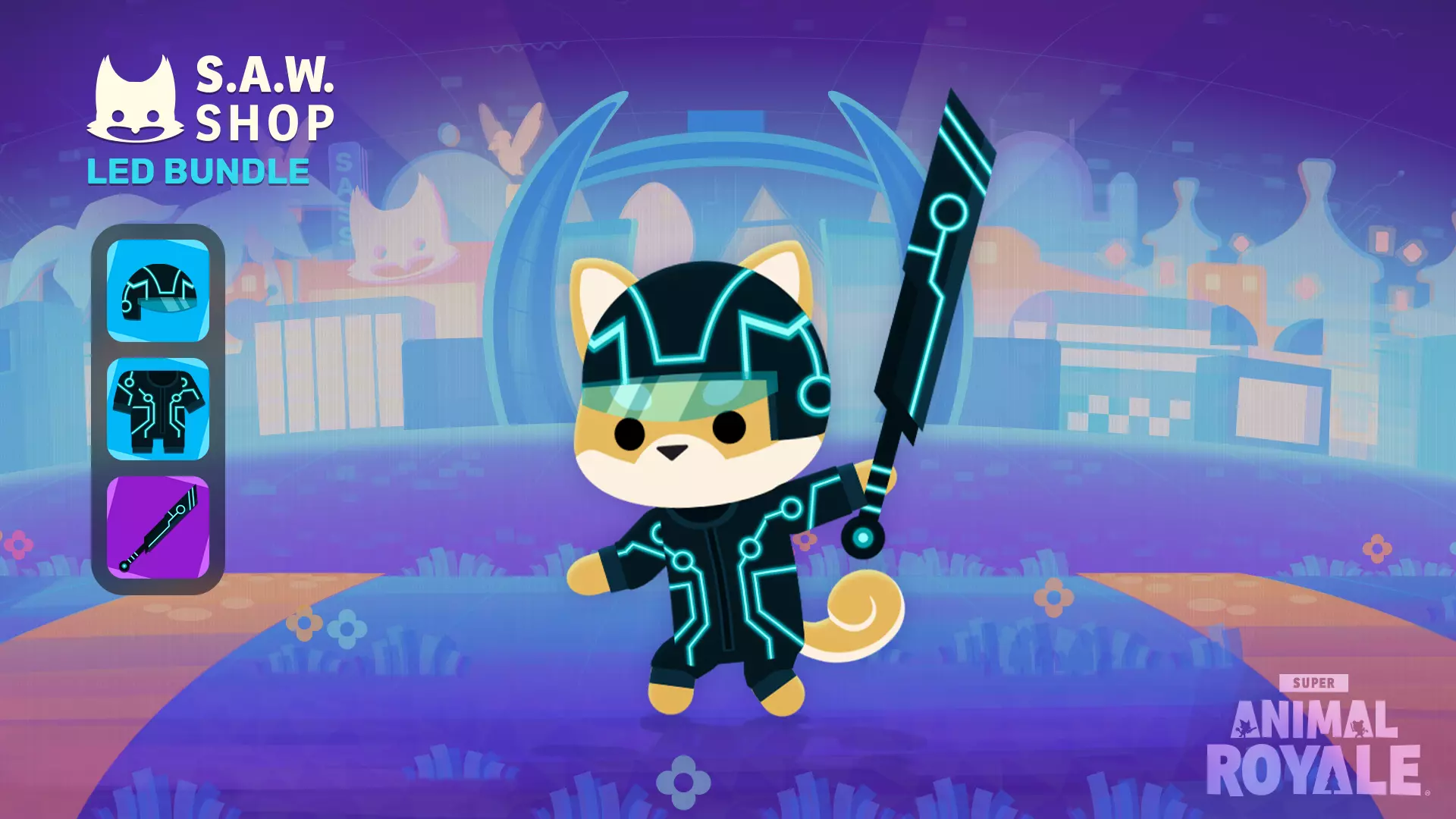 LED捆绑包和LED枪械捆绑包现已推出,助你以复古未来风格点亮岛屿。你可以在Ms. Macawsome的商店中获取它们,无需前往赛博空间。 LED捆绑包包含: LED头盔 LED服装 LED剑