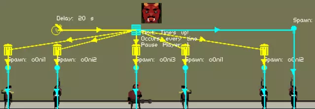 对于我们最后一个自定义触发器,我们有灰烬超时检测器。虽然它不是很通用,但在其特定的应用领域表现出色。 灰烬超时检测器允许关卡制作者检测关卡是否已被灰烬化。如果时间限制结束,屏幕外的朋克将被灰烬化。由于这被视为一次死亡,因此可以链接到销毁触发器。你可以尽情发挥想象来使用它。 命令