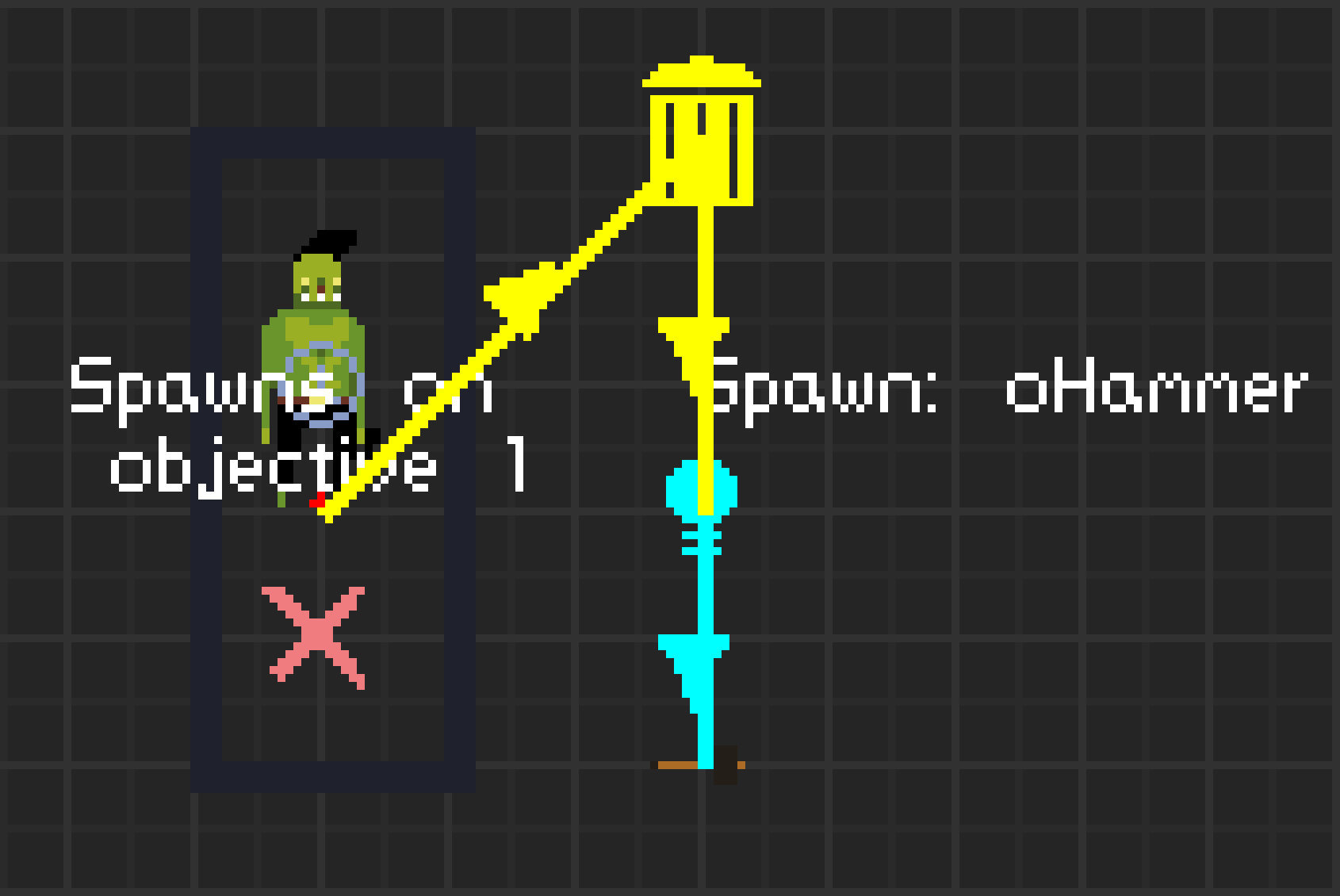 目标时间限制功能允许你为关卡添加时间限制,例如【强制转化】关卡中的时间限制。右键点击可打开其下拉菜单。【计时器开始条件】用于设置计时器开始计时所对应的目标。若设为“0”,则计时器在关卡开始时立即启动;若设为“1”,则在目标1完成后开始计时。【计时器时长】用于设置计时器持续的秒数。 当计时器启动所对应的目标之后的那个目标完成时,计时器将会消失。单个关卡中可以设置多个计时器。 该工具的实用之处在于,当计时器结束时它本身不会执行任何操作。因此,你可以将其与【触发器(延迟)】配合使用,自行设定计时器结束时的触发条件。注意:我是个卑鄙的骗子。目标时间限制结束时确实会触发某些效果。若时间结束时地图上仍有灰烬图腾,所有实体(包括死神)都会化为灰烬。若没有灰烬图腾,则不会发生任何事。 注意:除伊布赞外,所有骷髅均对此效果免疫。你可以躲进通风口来规避该效果。 其他工具 最后两种目标工具是延迟生成和强制击杀,可在敌人选项卡底部找到。
